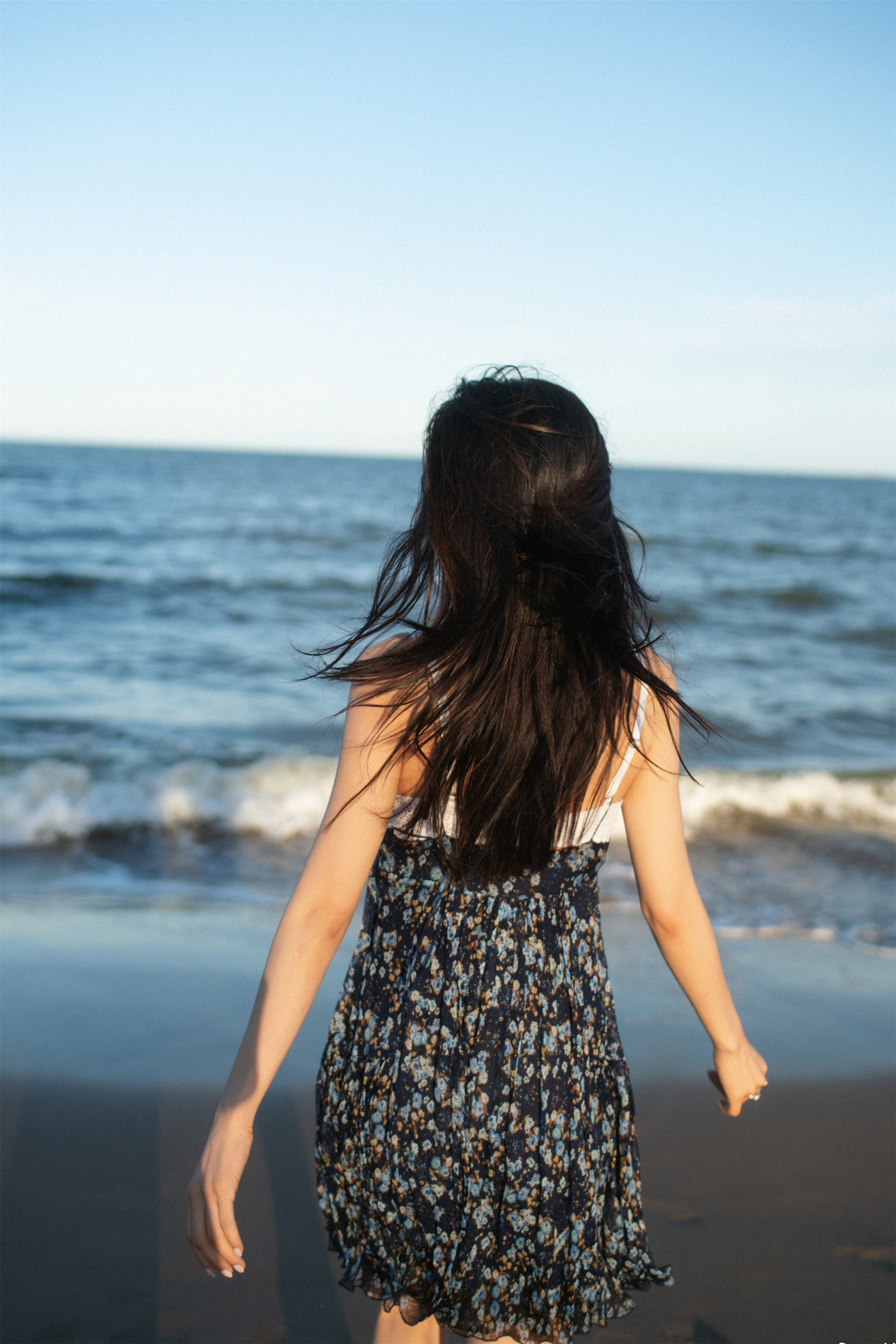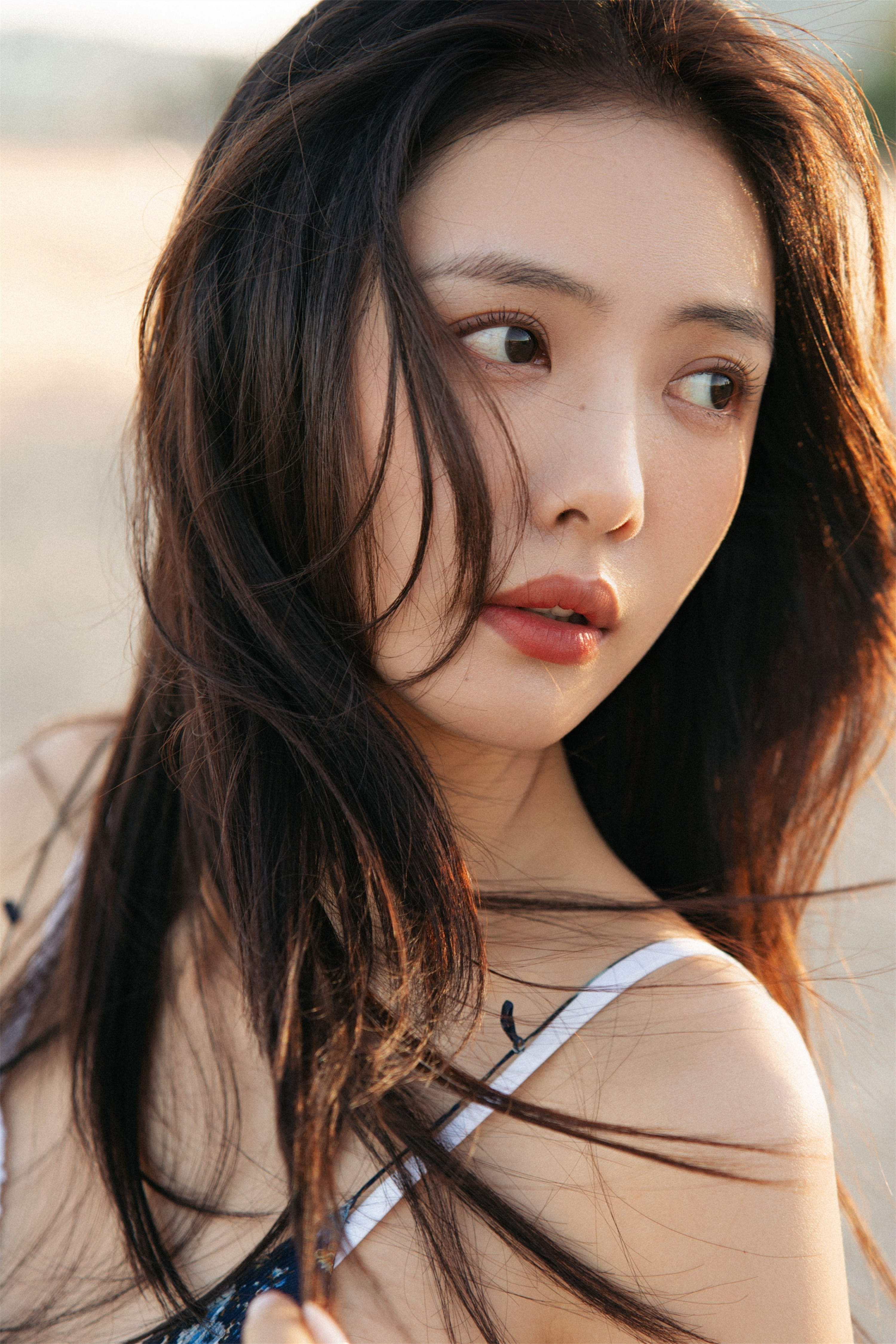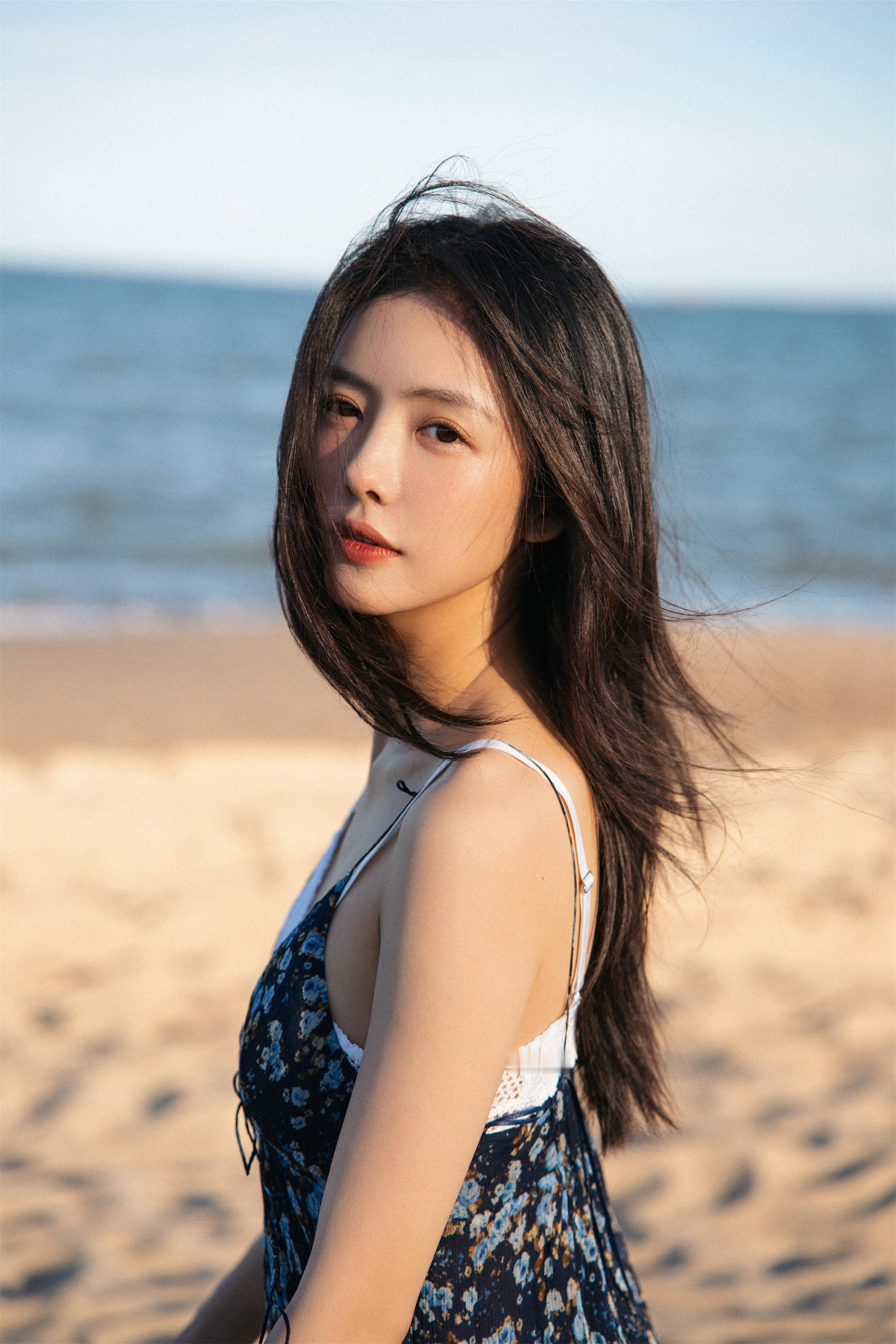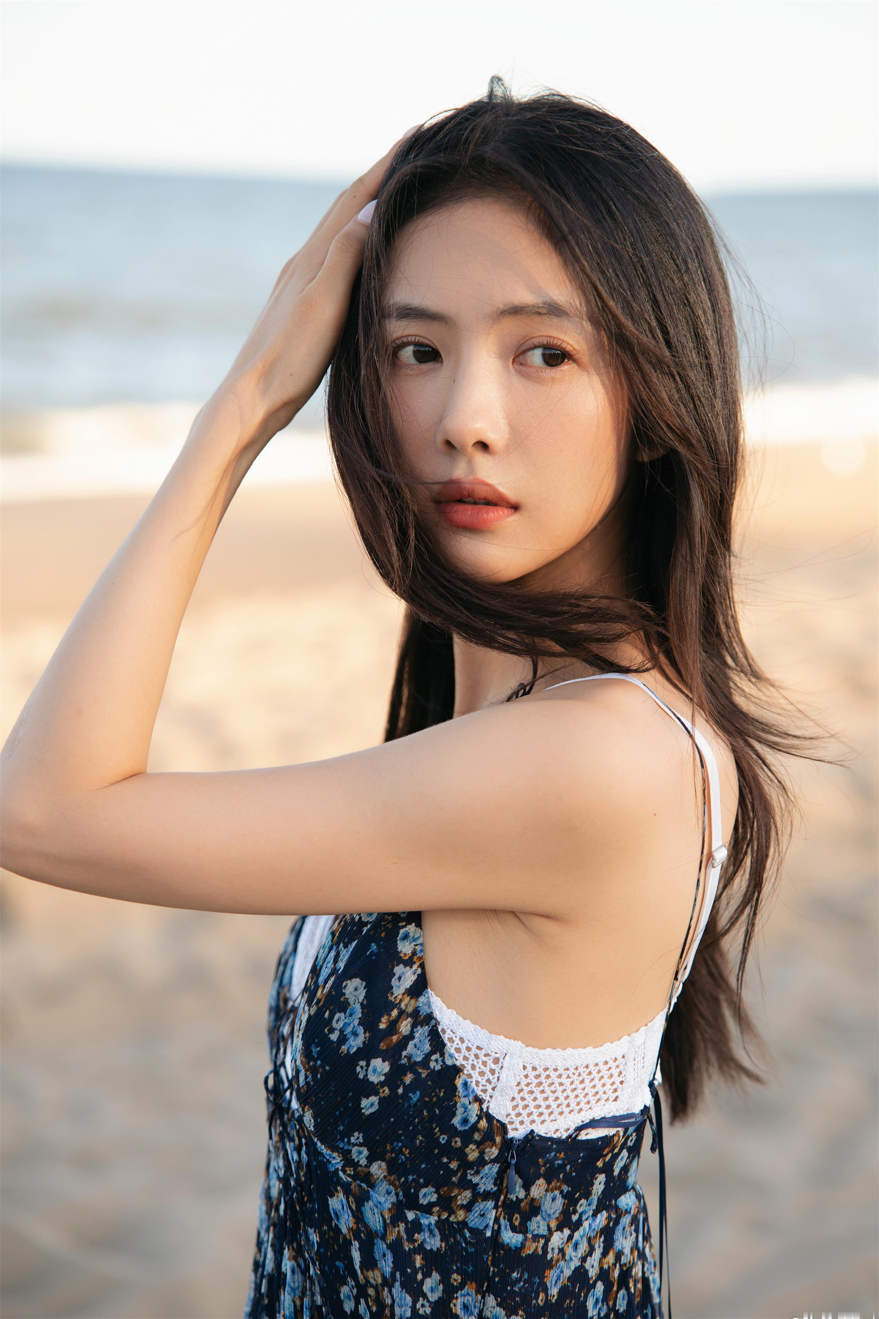 蔡文静,海边吊带碎花裙,秋日氛围感满满