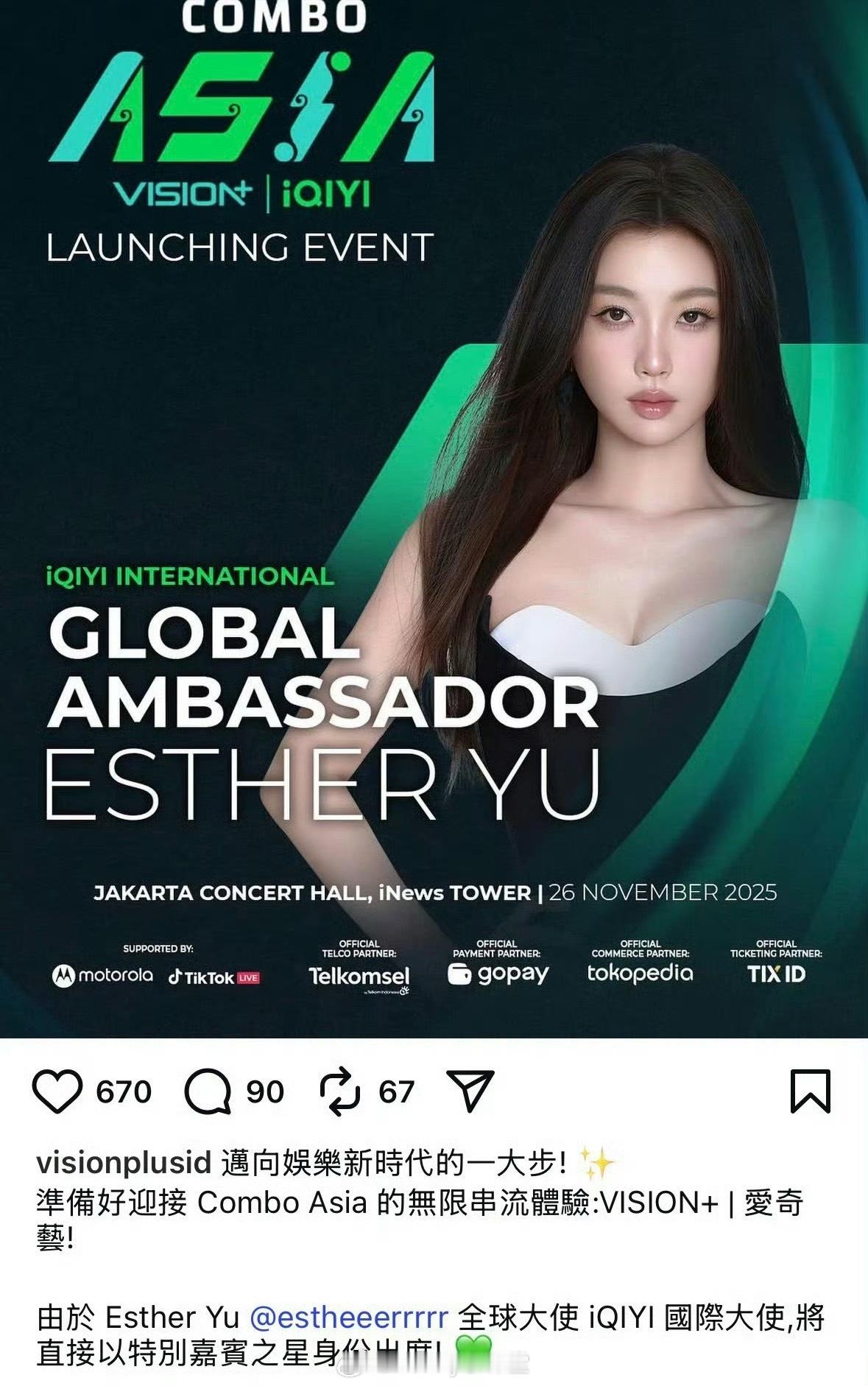 海外行程加一,虞书欣即将前往雅加达参加活动,又是国外