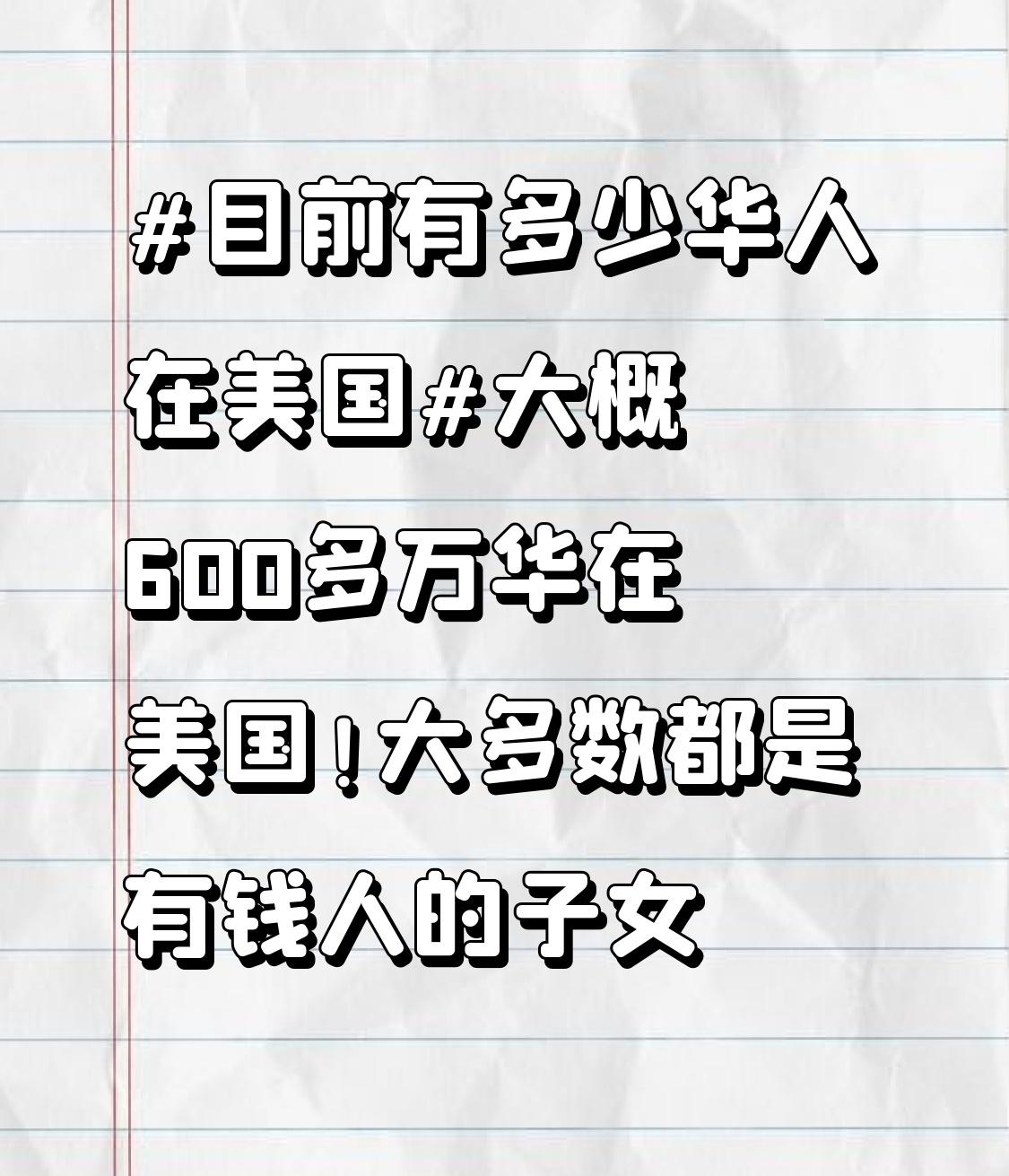 据说目前有600多万华人在美国,说大多数是有钱人的子女,这说法有点片面了。华人移民美国有不同阶段和原因。早期有不少劳工为了生计远渡重洋去打拼,还有很多优秀学子赴美深造后留下工作。比如科技领域,就有大量华人凭借自己的专业知识和努力在硅谷等地区发光发热。当然,也确实有一部分是家境优渥的孩子以留学等方式去美国。不能以偏概全地认为都是有钱人子女,华人在美国的构成是多元化的,大家都在不同领域为生活努力着。