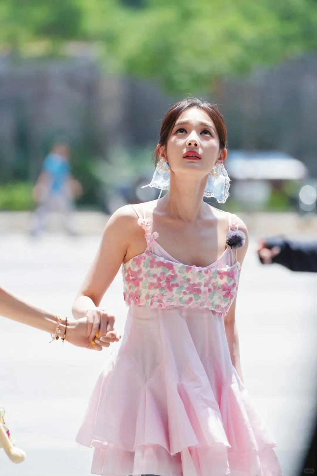 刘亦菲把死亡玫粉穿出了定制款的感觉,这种颜色普通人穿上分分钟黑三度,她居然能穿出