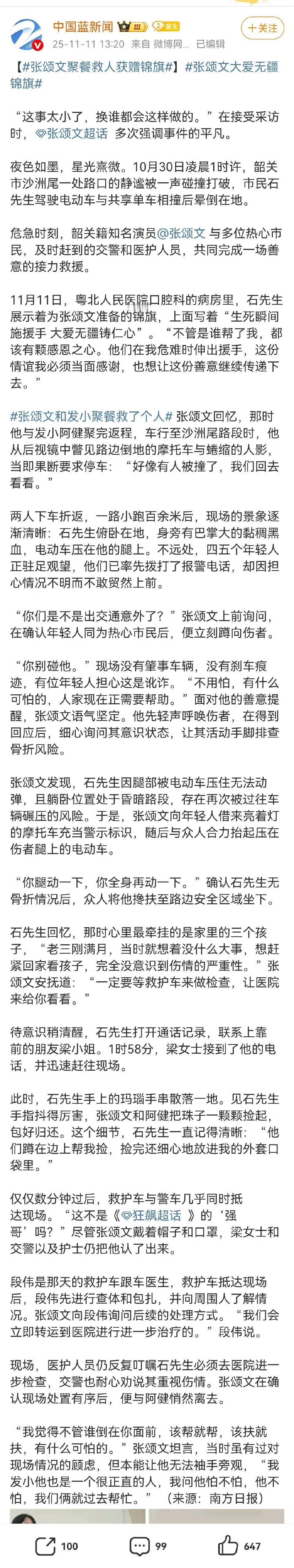 张颂文老师的底色一直都是善良啊回应深夜救人,也只是淡淡的说“这事太小,换谁都会帮”,可他做的远不止这一件见义勇为的善举。随手捡起垃圾,救助流浪的小猫小狗,或许正是这些小事才体现出张颂文老师骨子里的温润与慈悲