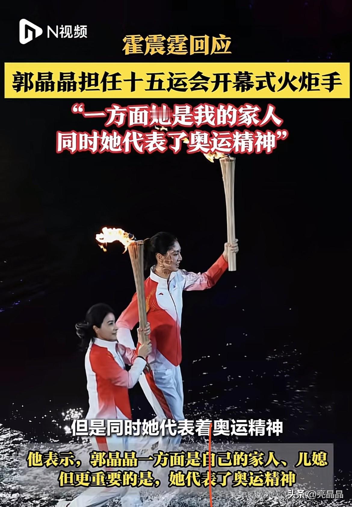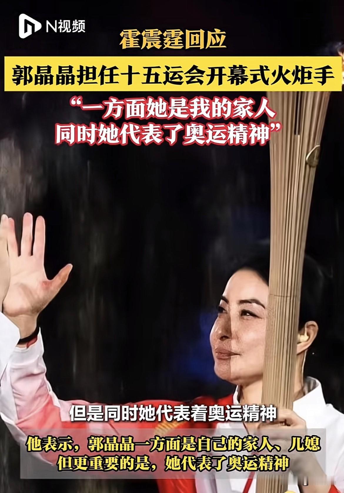 郭晶晶的高调,贵妇圈复刻不了。郭晶晶当十五届全运会火炬手,表示很骄傲很感动。 郭晶晶当年的跳水冠军,虽嫁入豪门,仍坚持自己的体育事业,2024年考取裁判证,以跳水裁判长身份高调出席巴黎奥运会,2025年被评为亚太最具影响力青年女性,此次当全运会火炬手,更是外界对其的认可。郭晶晶不需要晒豪门的养尊处优,靠自己的努力和实力活出自己。 霍震霆回应郭晶晶当火炬手一事很是自豪,自豪的是火炬手郭晶晶是自己家人,同时还代表着体育精神。看得出来当年霍震霆那句“感谢郭晶晶下嫁霍家”的含金量,是真心喜欢这个儿媳。 你喜欢郭晶晶吗? 霍震霆现场才知道郭晶晶是火炬手如何评价一代跳水女皇郭晶晶