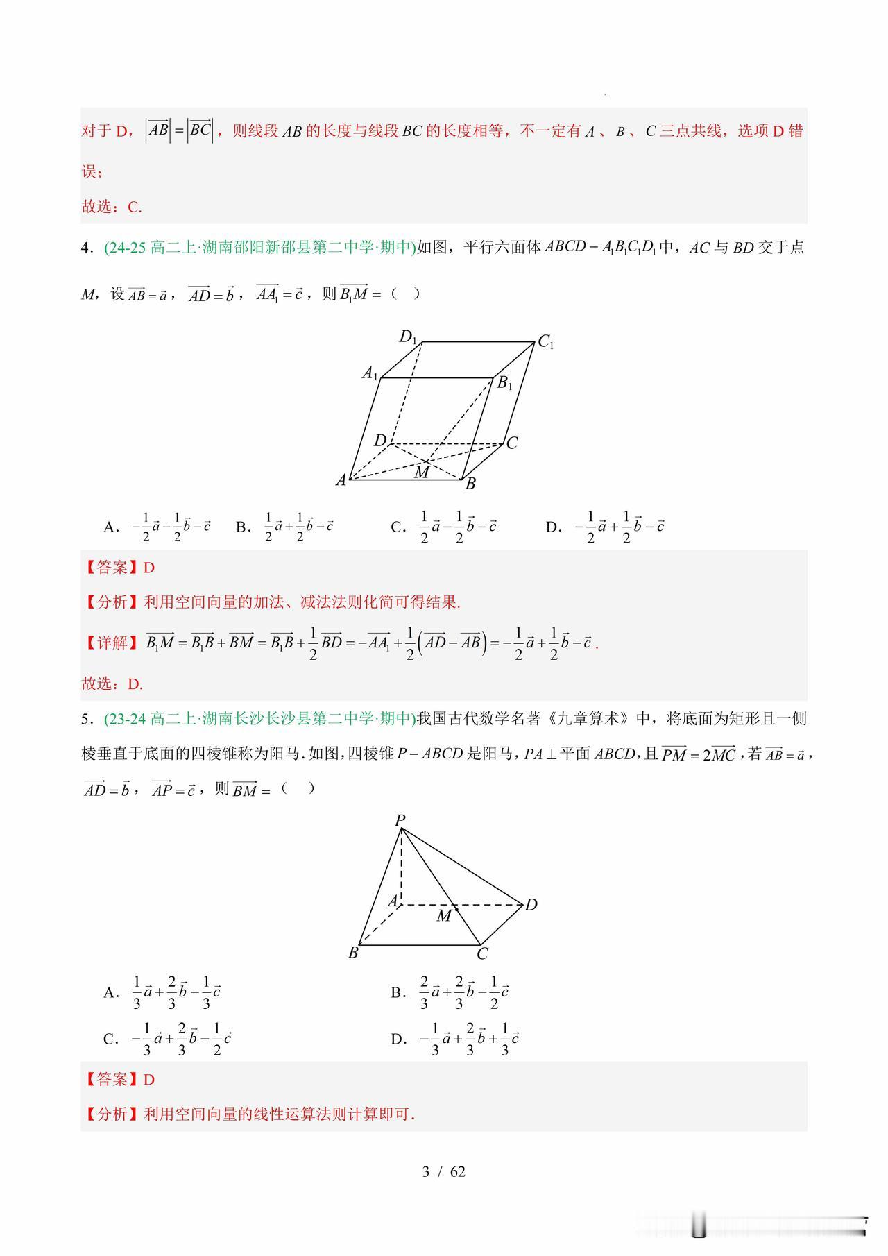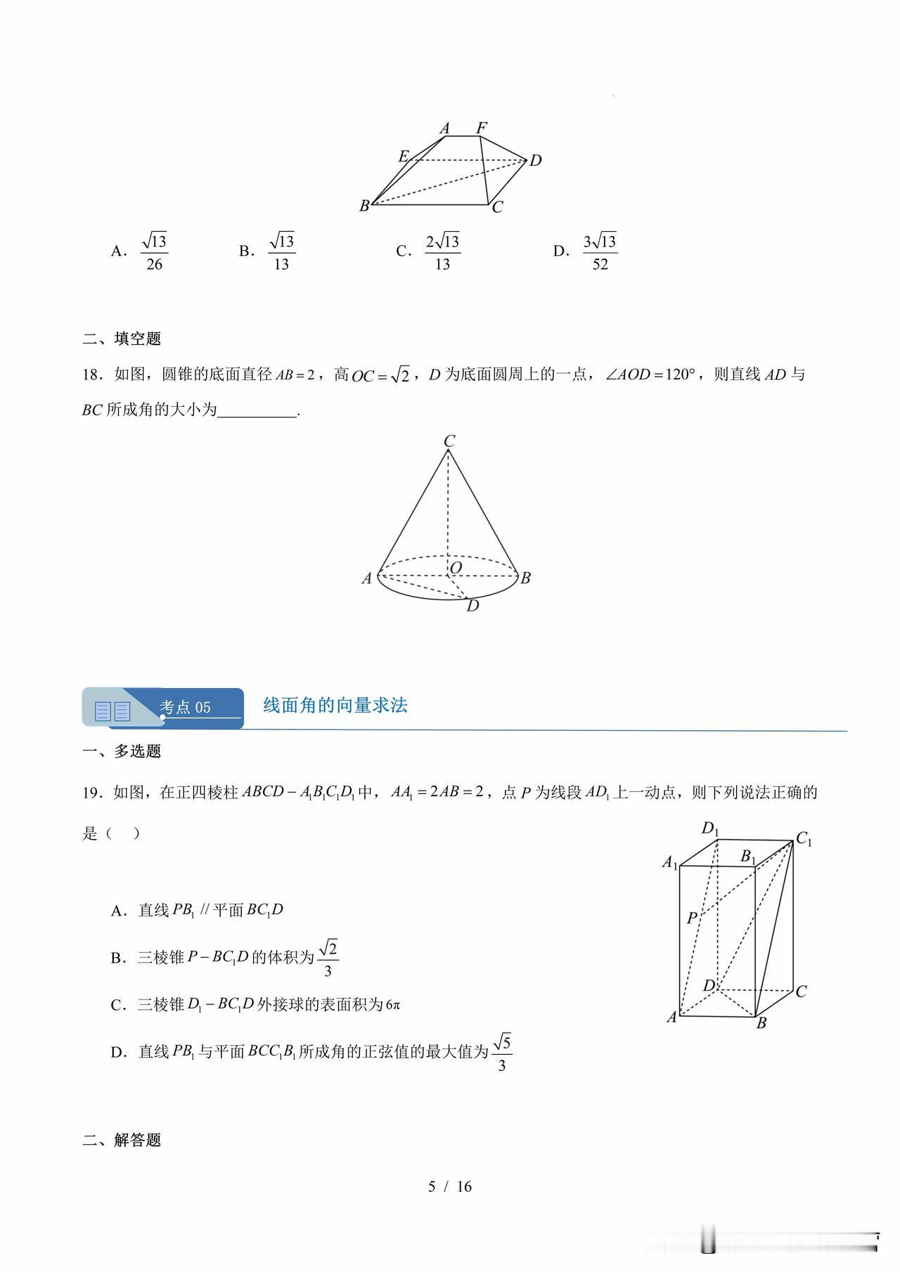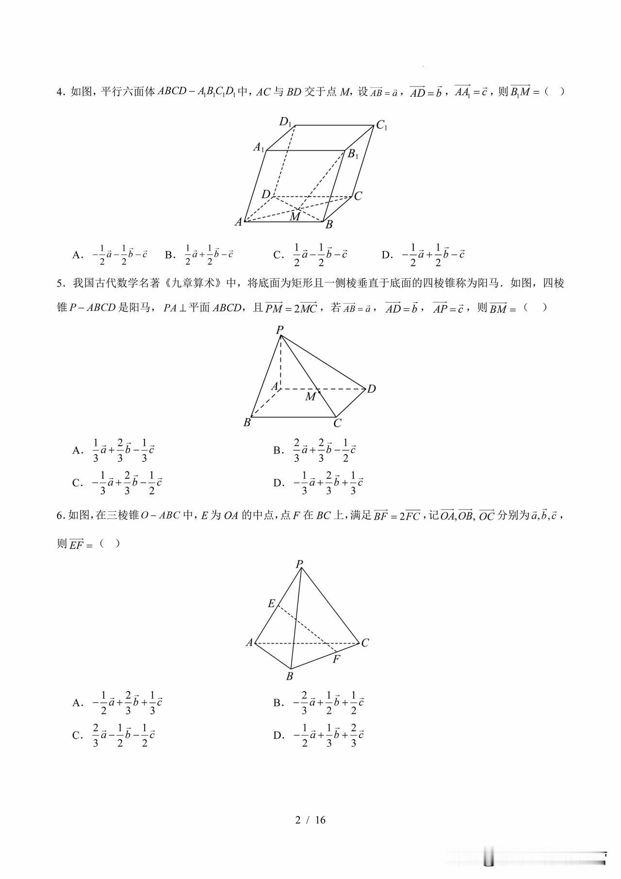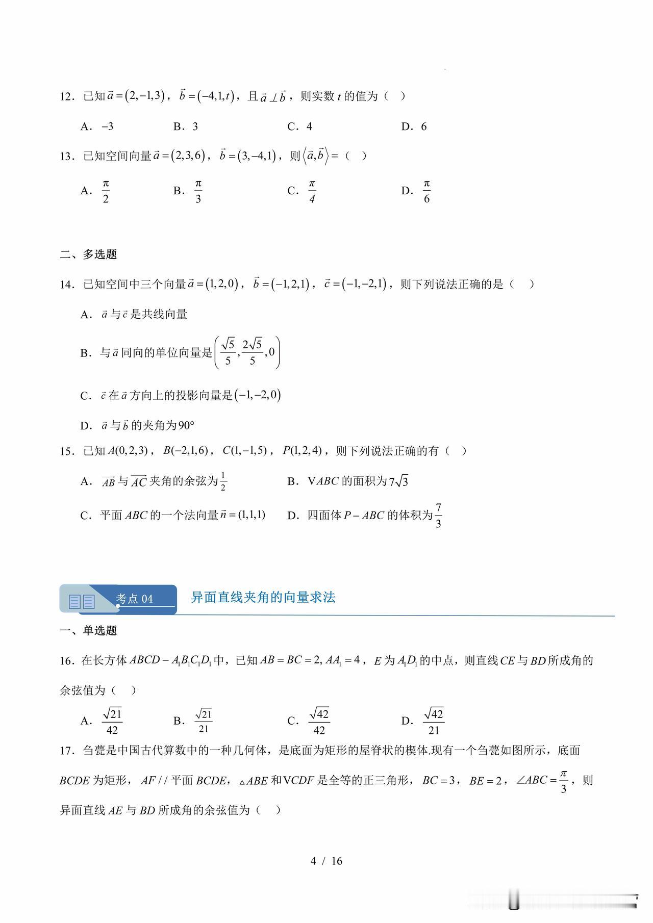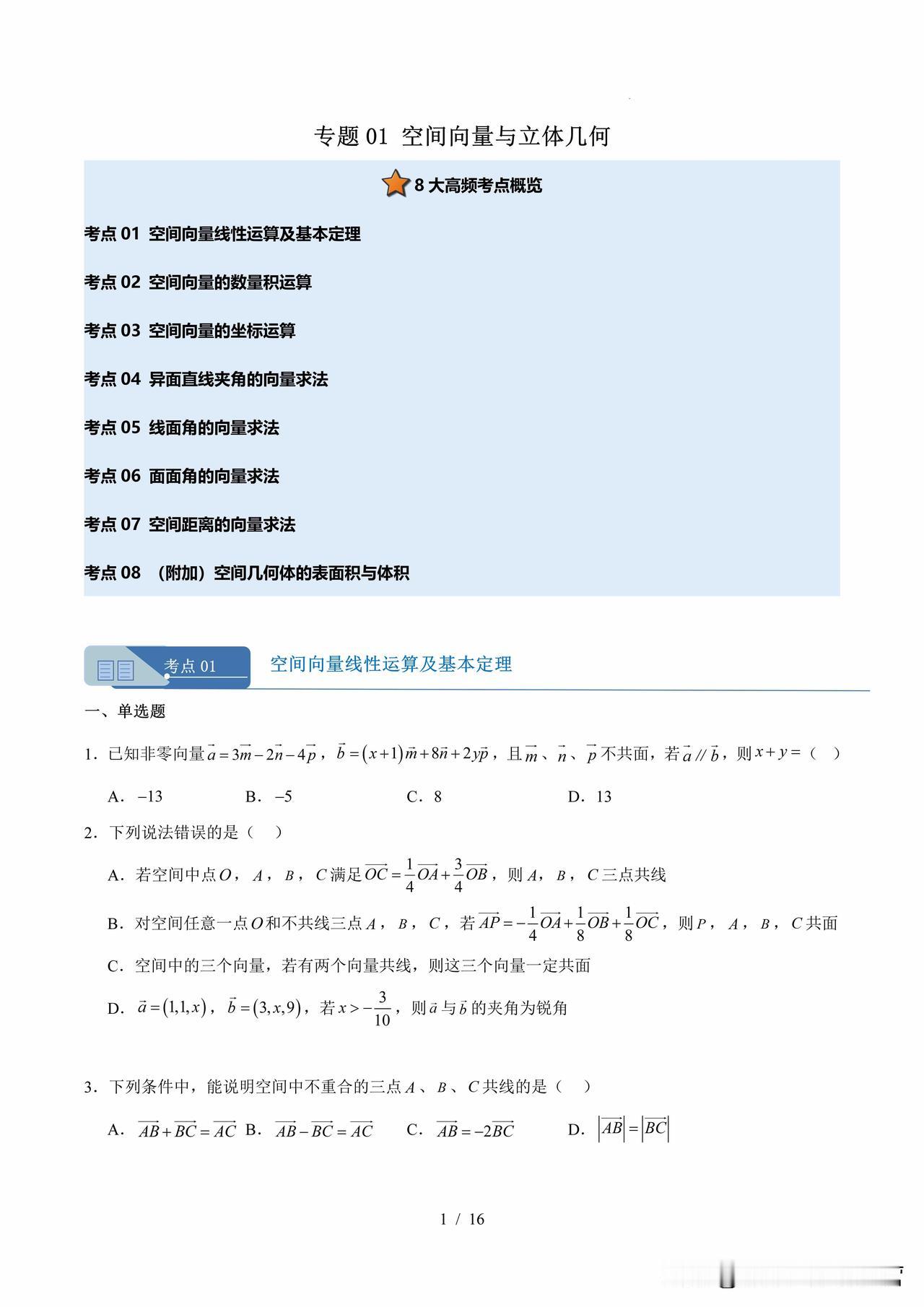 空间向量与立体几何8大高频考点 考点01 空间向量线性运算及基本定理 考点02 空间向量的数量积运算 考点03 空间向量的坐标运算 考点04 异面直线夹角的向量求法 考点05 线面角的向量求法 考点06 面面角的向量求法 考点07 空间距离的向量求法 考点08 (附加)空间几何体的表面积与体积空间向量 高考数学