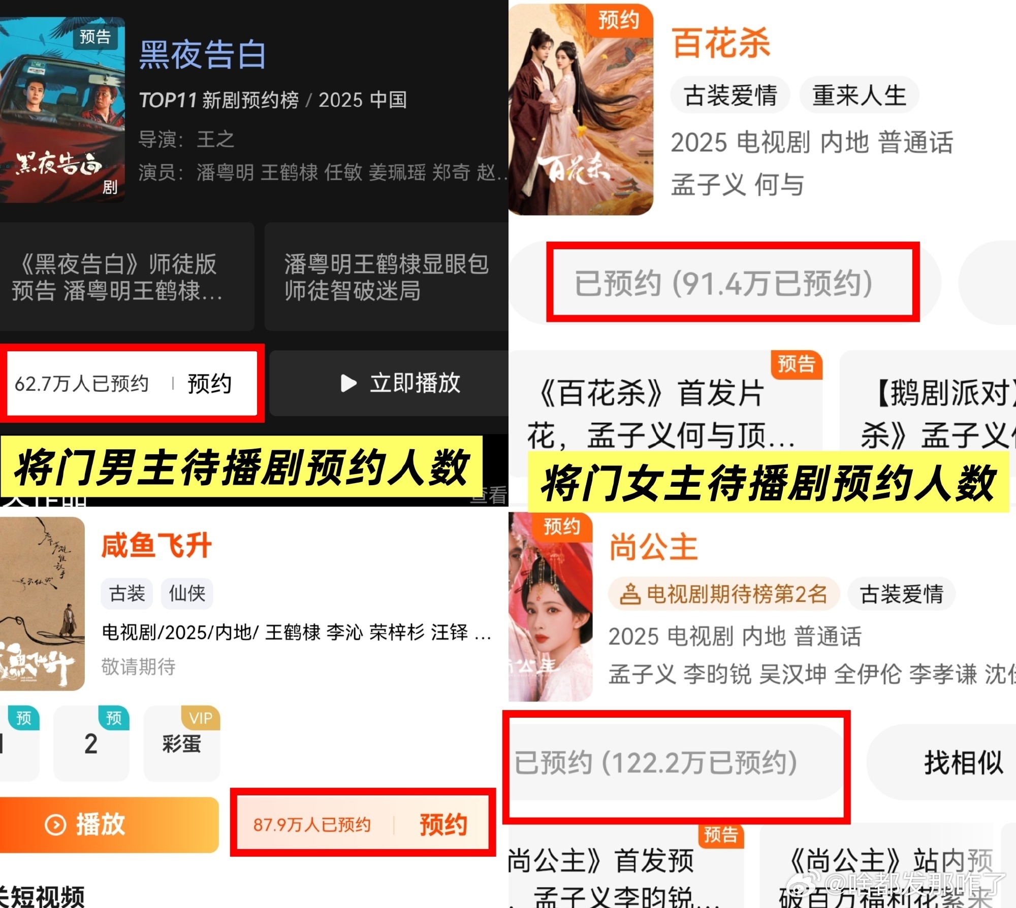 孟子义粉丝凭待播剧角色数据以及待播剧预约人数来证明:孟子义的的路人盘以及流量都比王鹤棣的大
