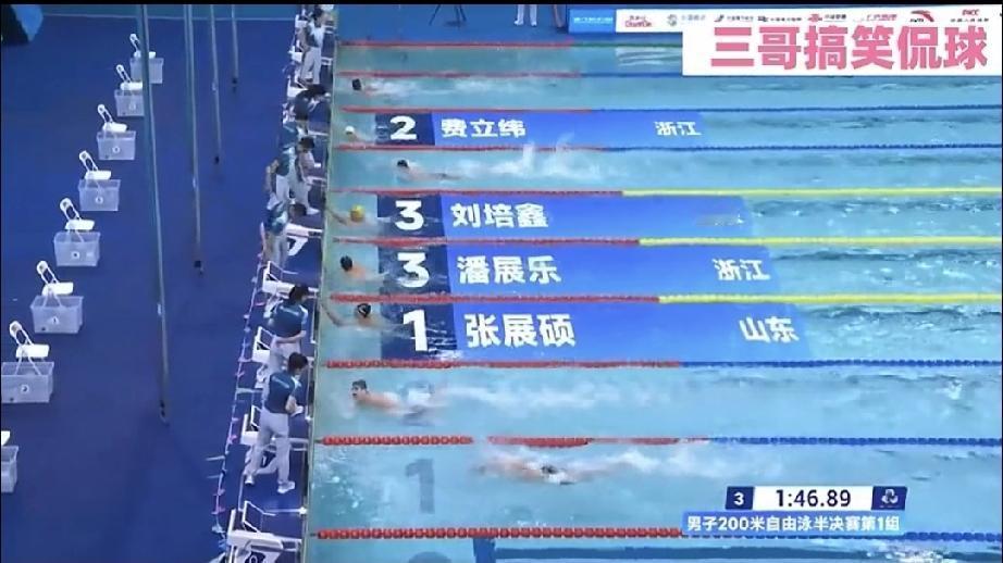 技术落后了? 第十五届全运会400米自由泳决赛中 张展硕夺冠,徐海博夺银,费立纬