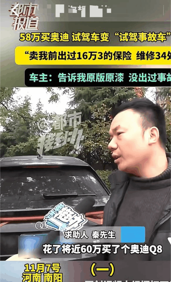河南南阳,一男子花58万买了一辆奥迪Q8,工作人员说是原版原漆的试驾车,但是他准备卖车时,发现这辆车在自己买车前出过一个163000元的保险理赔,维修了34处,于是他找工作人员对质,但运营总监说他们有告知客户真实车况、以合同为准,反正双方的说法不一致,最后找媒体求助。 信息来源:都市报道 说起来,这事是这样的:2024年5月,秦先生在南阳那家奥迪4S店,看中了店里标榜“官方认证”“原版原漆”的Q8试驾车。 销售跟他说,就只是洗车时刮了点小擦碰,他们换了个右侧大灯,其他跟新的一样,还能省8万多购置税。 想想划算,秦先生一口气掏了58万多,开回家没多久也没啥毛病。 可到了2025年,他想着把车卖掉回点资金,就去当地二手市场给车估个价。 结果那评估师一查,告诉他:这车在2022年第四季度做过一次大修,保险理赔16.3万,除了发动机没换,像大灯、叶子板、轮毂、保险杠一共34处都换了。 秦先生一下子懵了:“我买前谁也没提过,这明明是事故车啊!” 他立马找记者去4S店对质。 秦先生掏出当时的聊天记录和销售朋友圈,证明销售曾保证“没出过事故”。 4S店运营总监却甩给他另一份盖章合同,上面用黑笔写着换了前杠、大灯、叶子板、散热器、大框等配件,当时客户签了字,就算是已告知。 双方你来我往,谁也不服谁,于是秦先生非得做笔迹鉴定,查查合同到底是不是他当时看到的那版。 法律上,《消费者权益保护法》规定,消费者有权知道商品真实情况。 司法界也常说:格式条款里如果没重点提示重大事故历史,就不能简单靠合同盖个章就算告知了。 再看类似案例,镇江有位买47万试驾车的车主,法院判4S店“退一赔一”;无锡1750元小理赔案被认定只是履约瑕疵;天津新车掉漆案,4S店还被消协点名。 可见,不同情形下法院对告知义务和赔偿标准也不一样。 眼下案件还在媒体关注阶段,秦先生要靠笔迹鉴定来搞个转折点,如果能证明4S店后加了字,合同条款可能被判无效,他们就要承担举证不利后果。 最后怎么赔?有可能退车退款、还得按消保法第五十五条走“退一赔三”或赔付实际损失。 这事告诉我们,买二手车别光听销售一句话,合同也要仔细看。 如果合同里重要内容只是藏在格式条款里,又没人专门跟你提示,很可能就要吃大亏。 所以,我们买车时一定要验车、验合同,多留个心眼,以防万一,不然等出事了就后悔莫及。