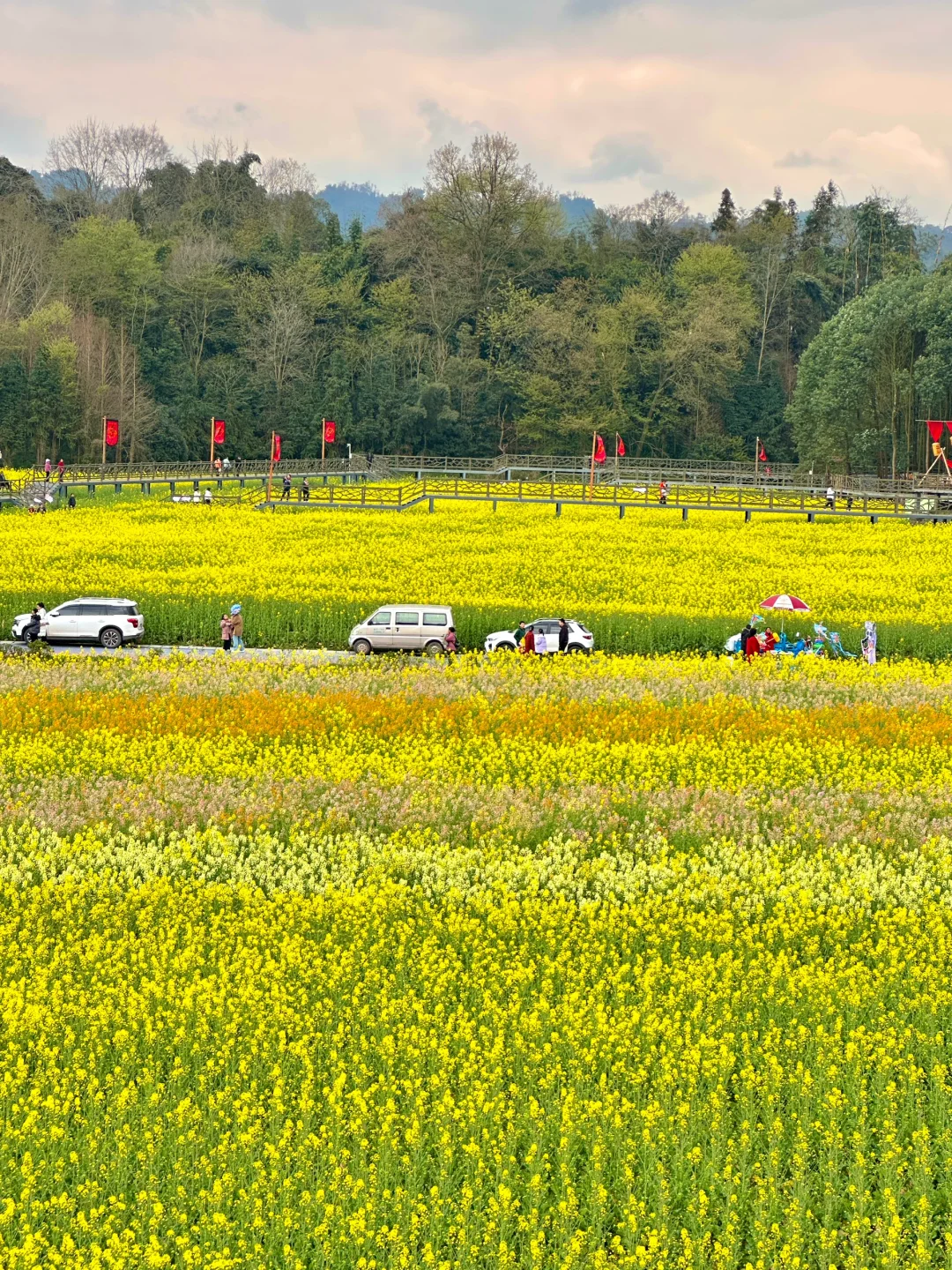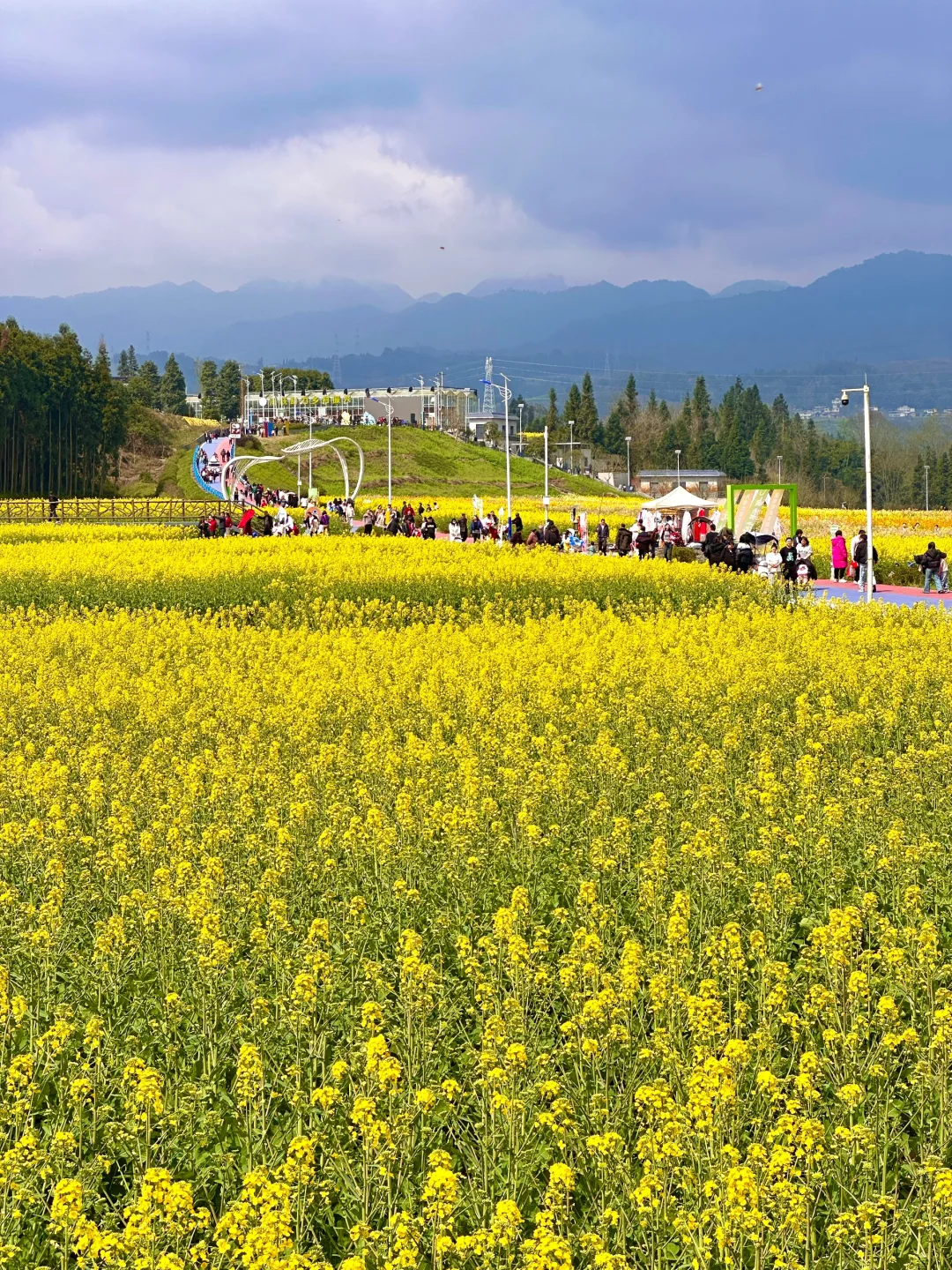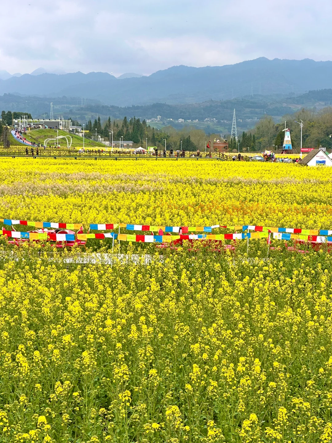 花情实况播报 3.9实拍!!全live图带大家感受这里的美!! 成都周边2h!!! 免费的彩色油菜花海!!真的太太太浪漫了…… 而且这里🈶好多好多小吃摊!! 还有乐队live!!! 放风筝 遛狗 遛娃 油菜花田里拍照野餐 真的太有意思了!!速来速来……