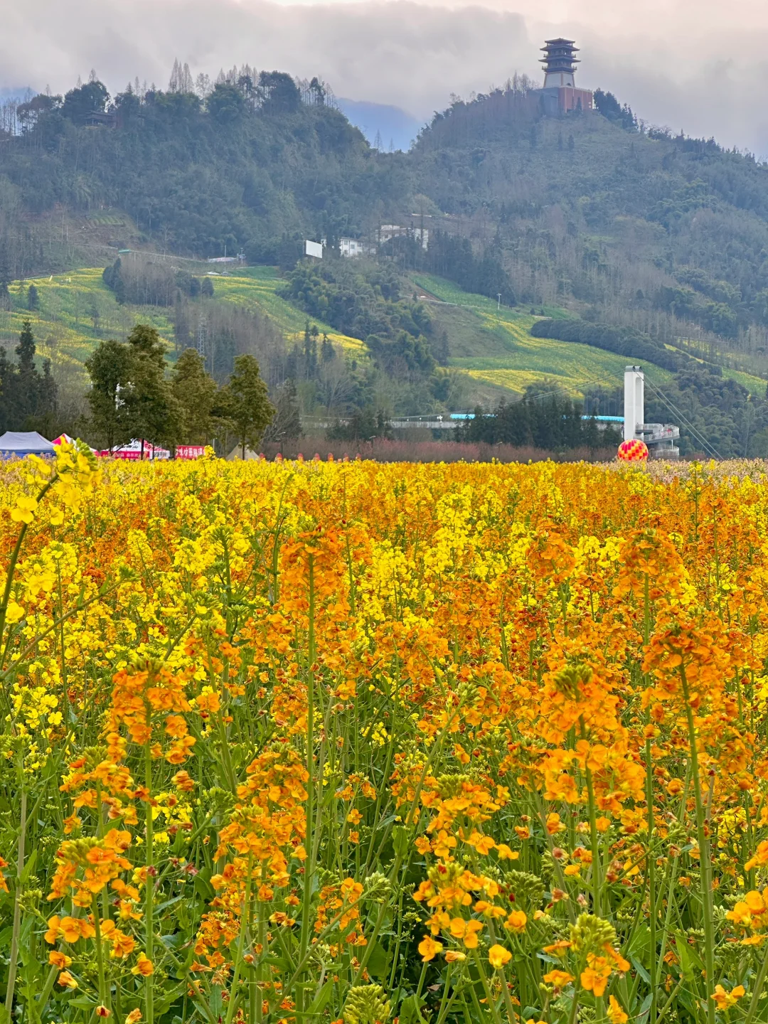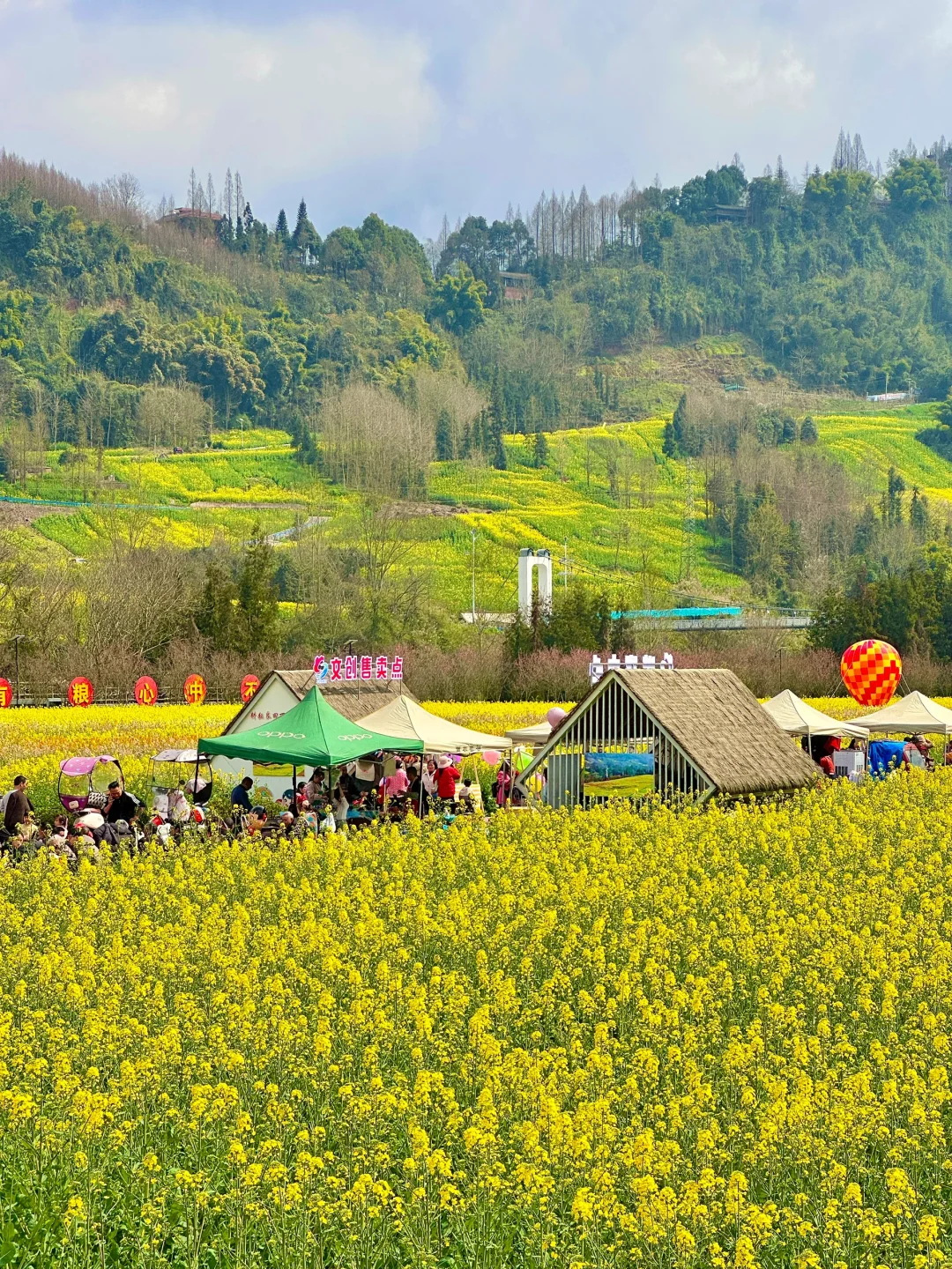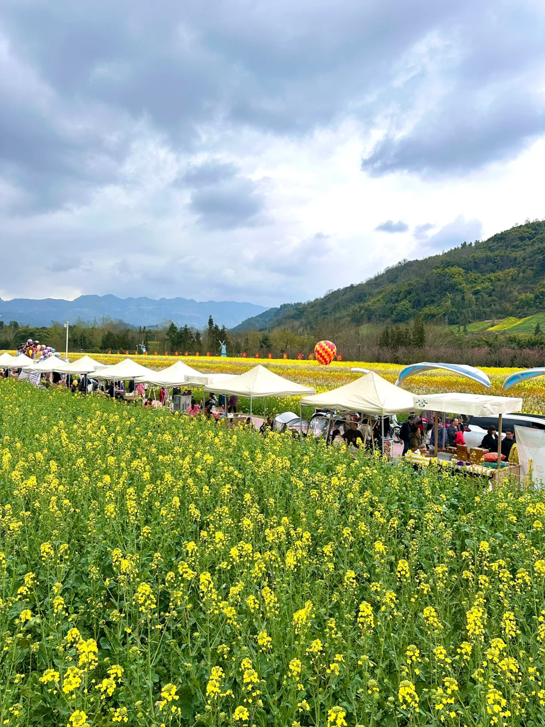 花情实况播报 3.9实拍!!全live图带大家感受这里的美!! 成都周边2h!!! 免费的彩色油菜花海!!真的太太太浪漫了…… 而且这里🈶好多好多小吃摊!! 还有乐队live!!! 放风筝 遛狗 遛娃 油菜花田里拍照野餐 真的太有意思了!!速来速来……