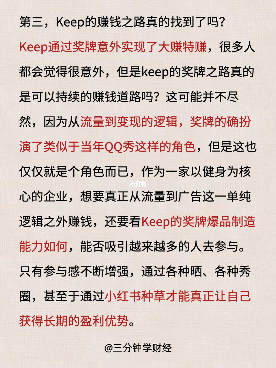 赚钱不是表面看似突显张力,才叫赚钱。而像keep这种赚钱模式才是聪明之举。仔细看看我的文章,大家就能看明白keep的玩法,甚至可能对你们自己的产品公司,也能起到相应的作用。