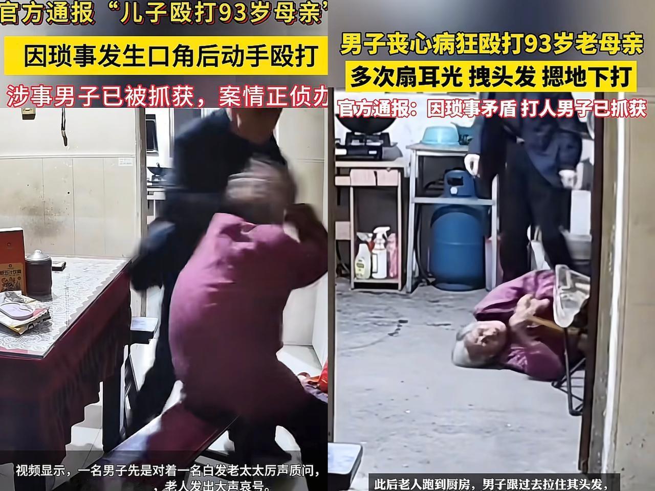 最近网上疯传一段让人揪心的视频: 江苏常州武进区,一个白发苍苍的老太太被自己儿子按在地上 暴打。视频里,老太太被儿子揪着头发扇耳光,惨叫声混着哭声,老人躲进厨房又被拽着头发拖出来,整个人蜷缩着倒在地上,儿子还不依不饶地挥拳头。这场景让无数网友气得直骂:“这还是人吗?93岁的亲妈都能下狠手!” 比起陌生人的伤害,至亲的暴力更让人窒息。我们总说“血浓于水”,可在这个儿子眼里,母亲或许只是个累赘。赡养老人从来不是选择题,而是为人子女的底线,连生养自己的母亲都能施暴,这样的人早已丧失了做人的基本良知。 更值得深思的是,类似的养老矛盾并非个例,如何让老人安享晚年,不仅需要道德的约束,更需要制度的保障。屏幕前的你,看完这段视频是否也无比愤怒?你觉得该如何杜绝此类亲情泯灭的悲剧再次发生?快来评论区说说你的看法!