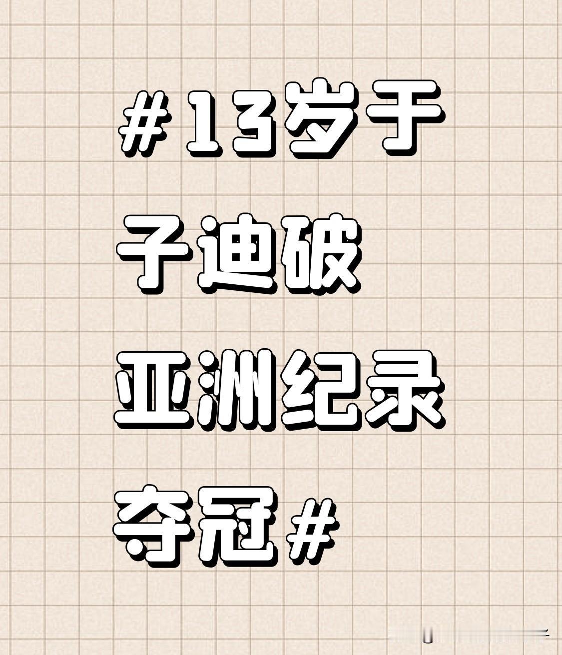 13岁于子迪破亚洲纪录夺冠 13岁的于子迪简直太牛了!在十五运会女子200米混合泳决赛中,她以2分07秒41的成绩夺冠,还超过了叶诗文2012年在伦敦奥运会创造的亚洲纪录。要知道,叶诗文可是泳坛传奇,于子迪能超越这一纪录,实力可见一斑。 才13岁就有如此出色的表现,未来不可限量。她这是妥妥的“小孩姐”,一出手就惊艳众人。相信在之后的比赛中,于子迪还会给我们带来更多的惊喜,期待她继续在泳坛发光发热!