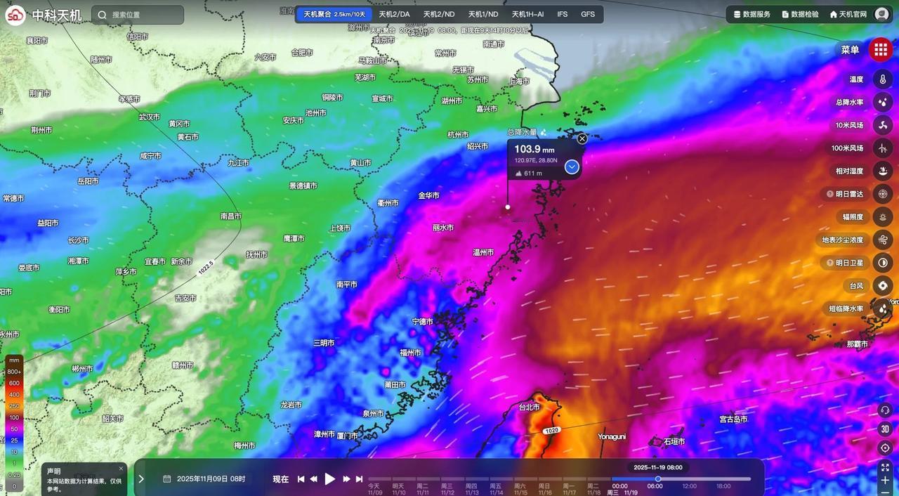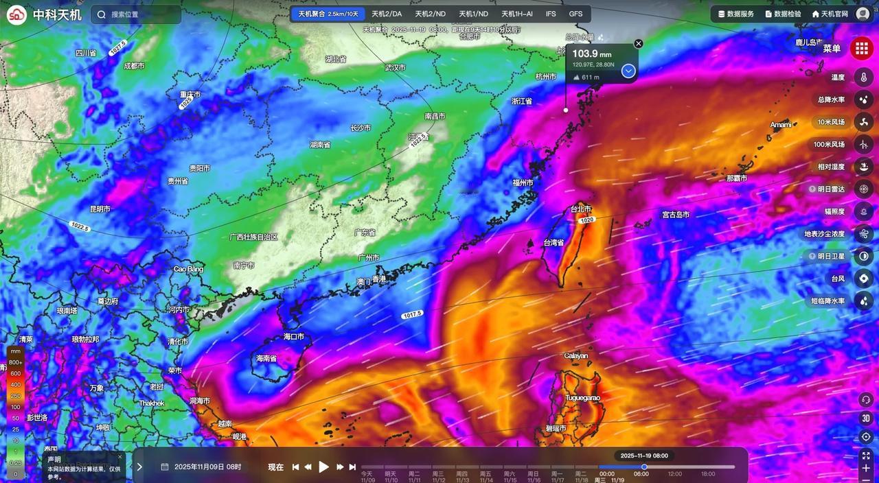 台风凤凰大概率近海转向,不会登陆福建浙江 但浙江大部还是会出现大到暴雨,降雨时段主要集中在11日凌晨到13日早上,台州等地48小时累计降雨量可能超过100mm,但大雨区域很难突破金华-宁波一线,杭州相对安全。 至于魔都,甚至可能一滴雨都下不来。风力方面,浙江沿海阵风会达到七级左右,福建沿海风力8-10级。汕尾至汕头也有8级左右的阵风。非沿海区域,风力下降很快,杭州和魔都基本上不会超过4级风。 在另外一个方向,珠港澳一带雨量也几乎为零,全运会影响不大,但是11/12日阵风会达到六级以上,或许短跑和跳远选手能顺风搞点事情。 天机可以泄露