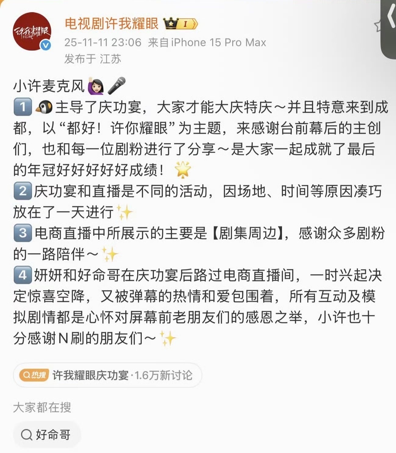 《许我耀眼》官方回应了庆功宴卖货争议!!