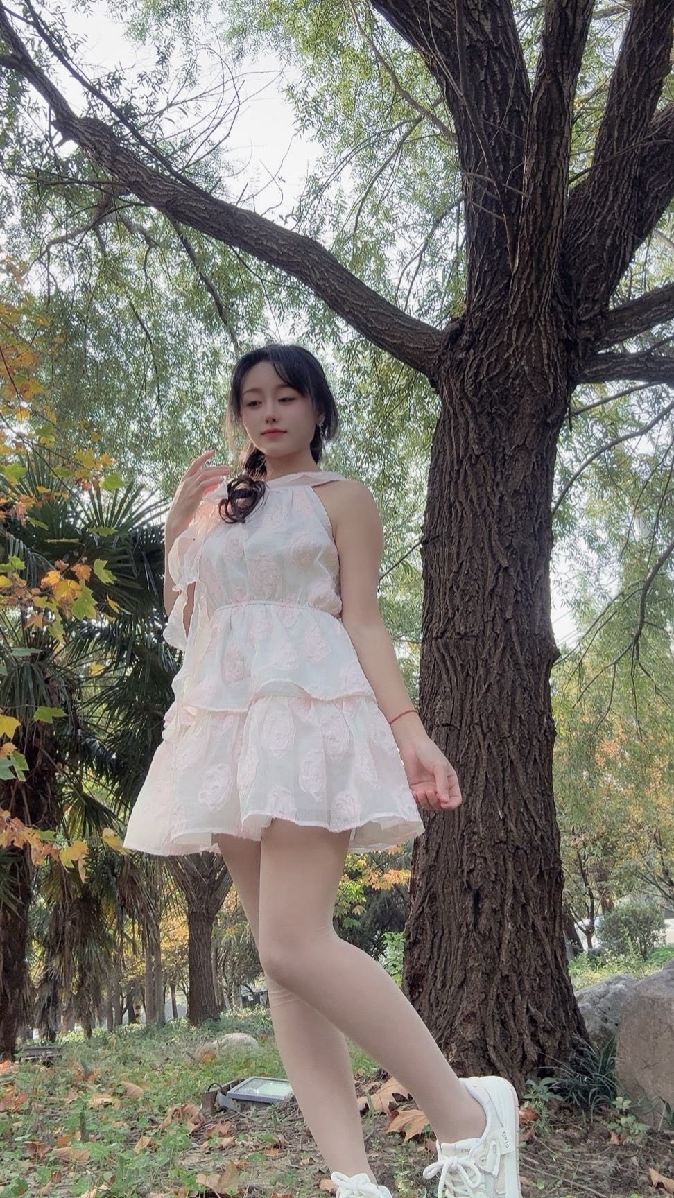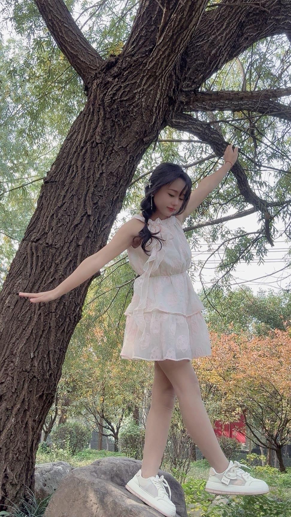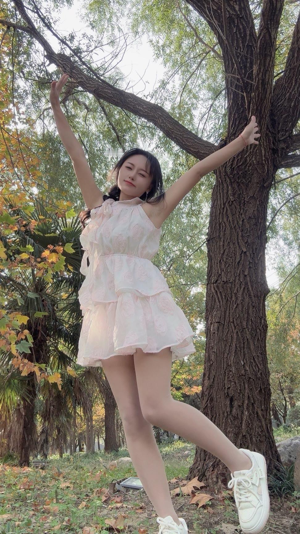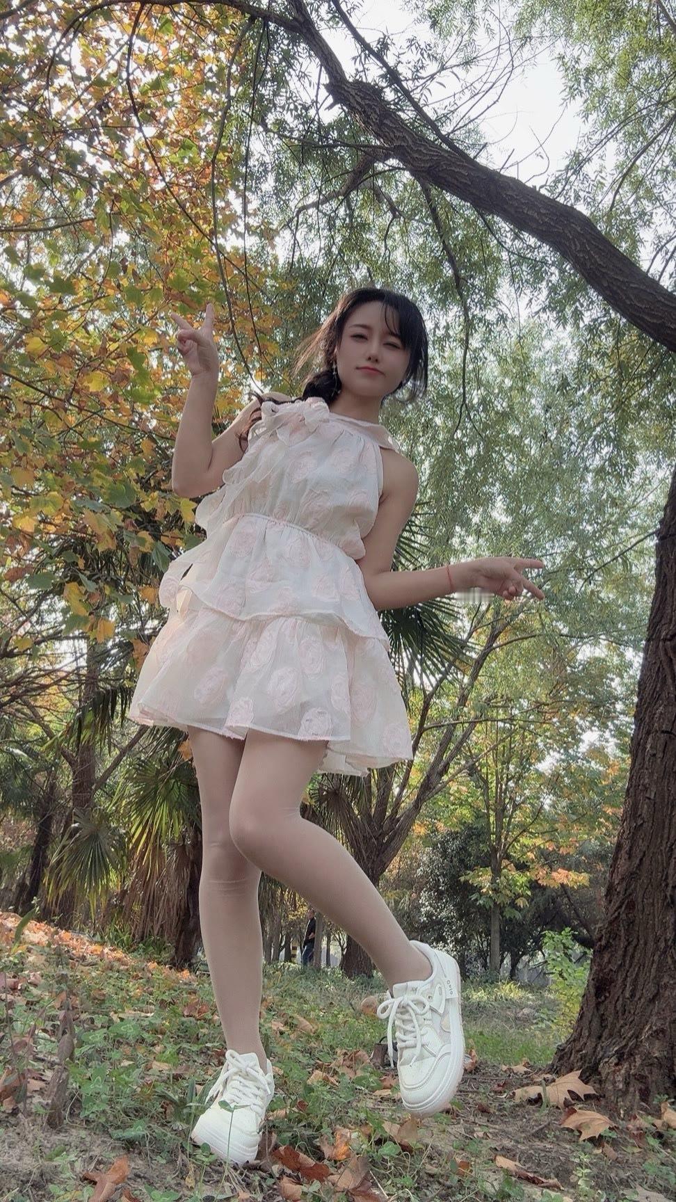温柔的白色蕾丝连衣裙自带仙气,层层裙摆轻盈又灵动,配上小白鞋瞬间把甜美元素和松弛感结合得刚刚好~往树下一站,像从秋日森林里走出来的小精灵~