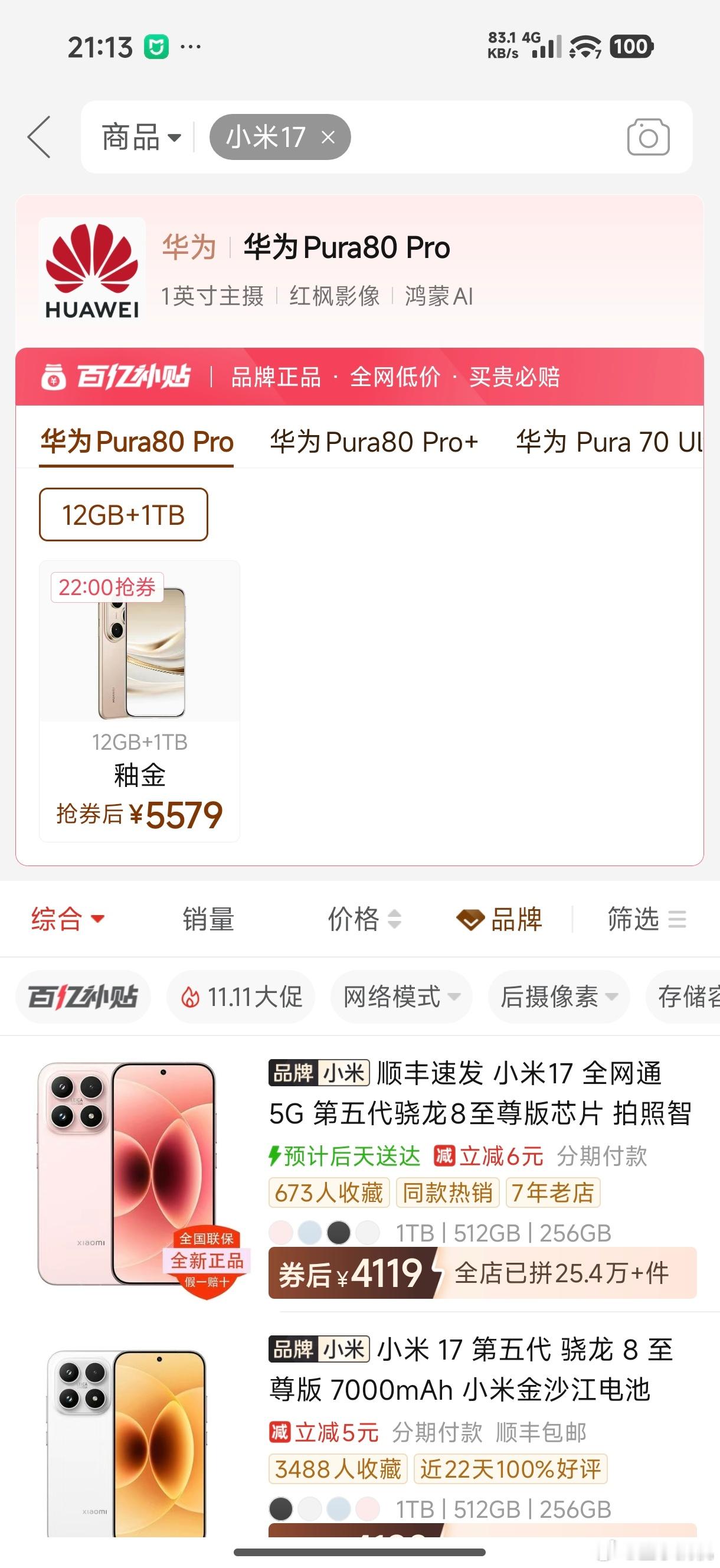 ???不是,拼夕夕搜小米17怎么主页变成了Pura 80???搜了下其他家的新旗舰机,包括苹果在内,主页顶部显示的都是自家的机子,啥情况?