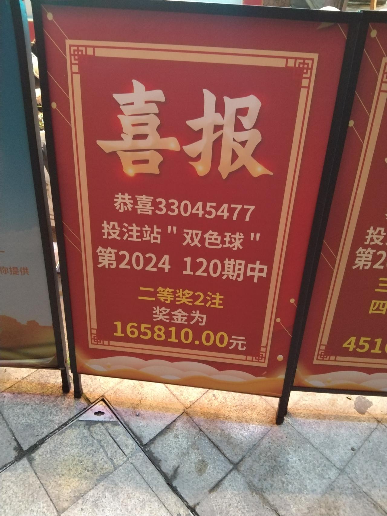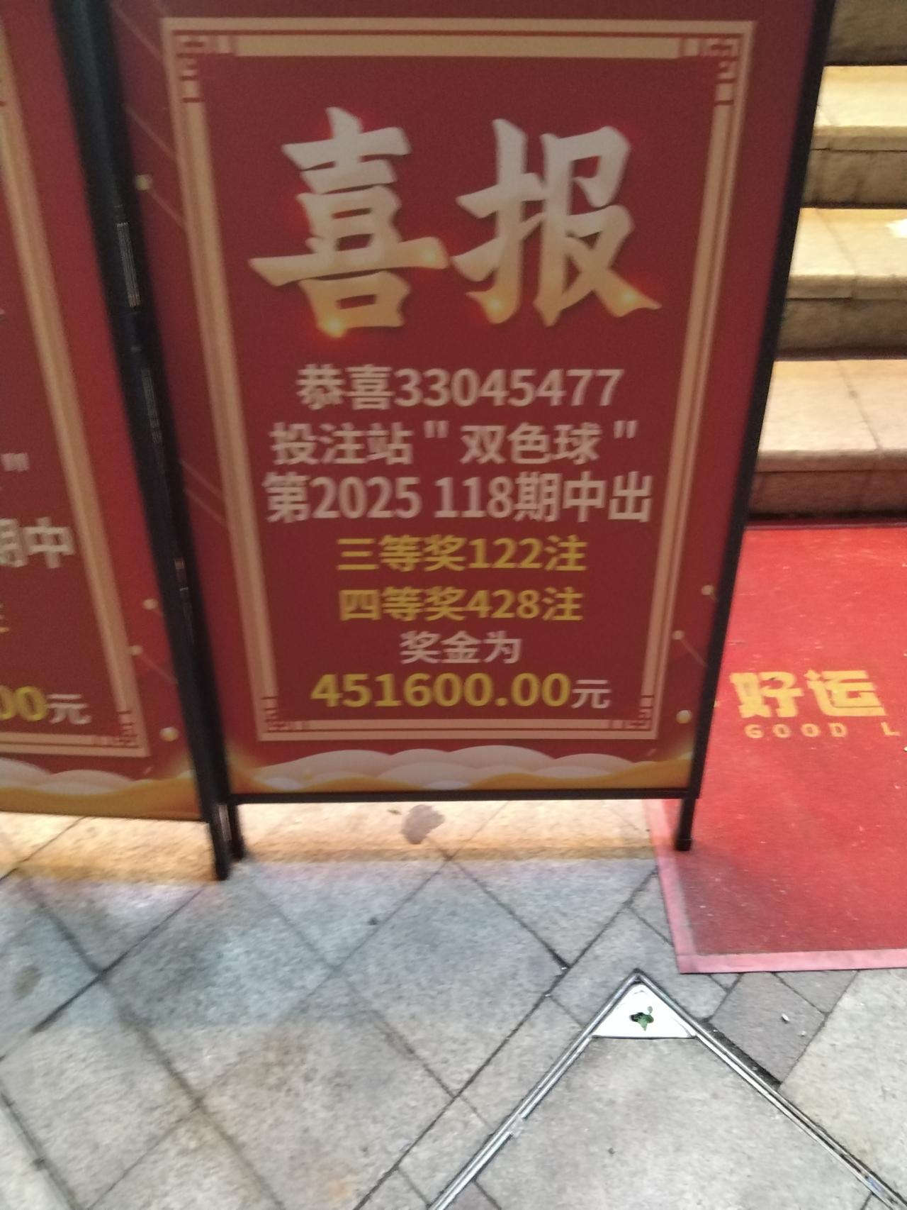 昨天去买彩票,看见那家彩票店又有人中奖了,双色球二等奖两注,三等奖122多注,四