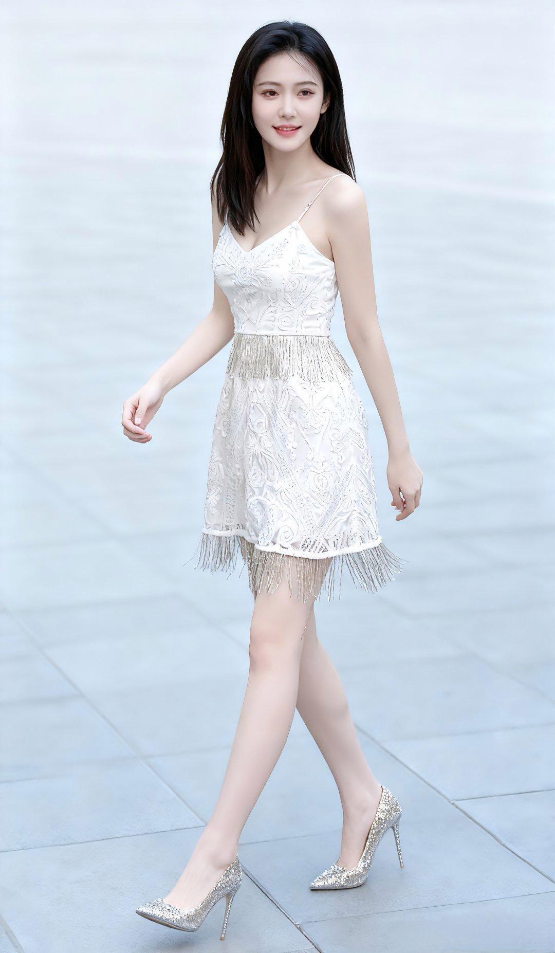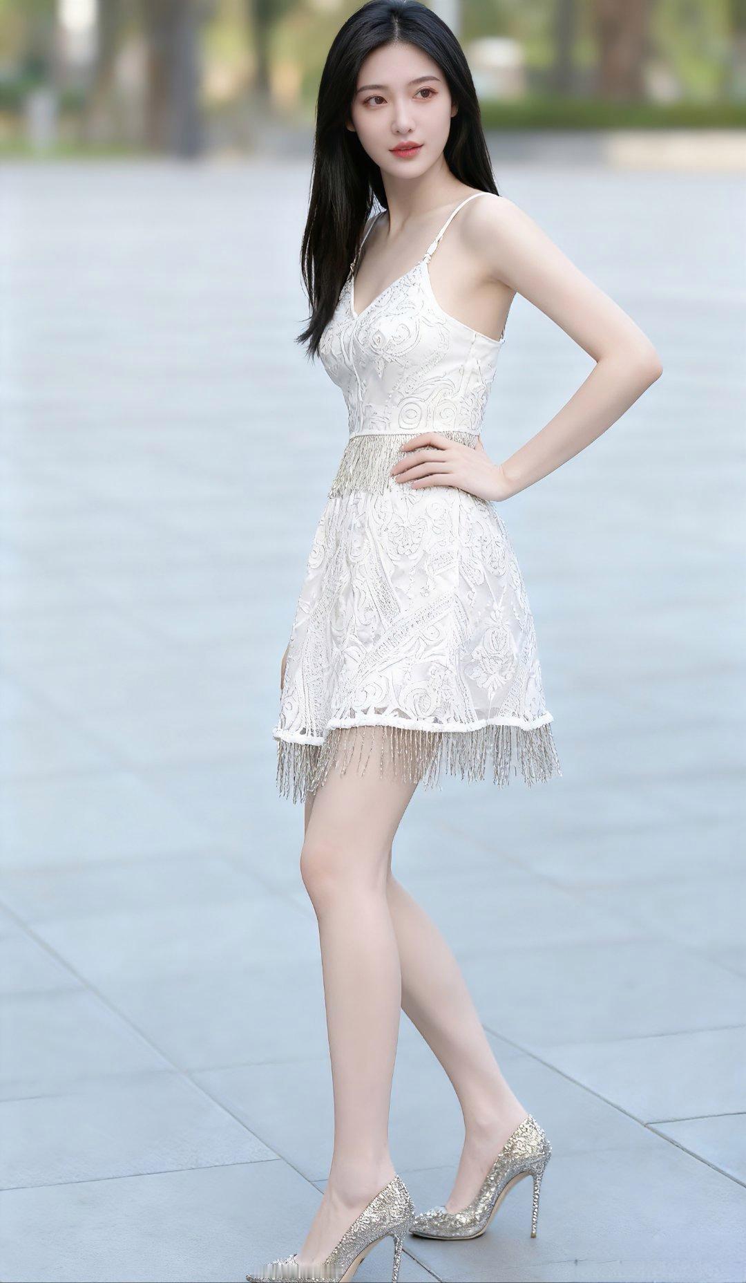 清新穿搭,浅蓝色蕾丝上衣搭配白色高腰裙,优雅又减龄!