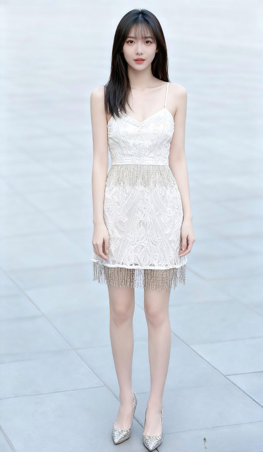 清新穿搭,优雅白裙与自然绿植的完美结合,甜美笑容,轻松自在。
