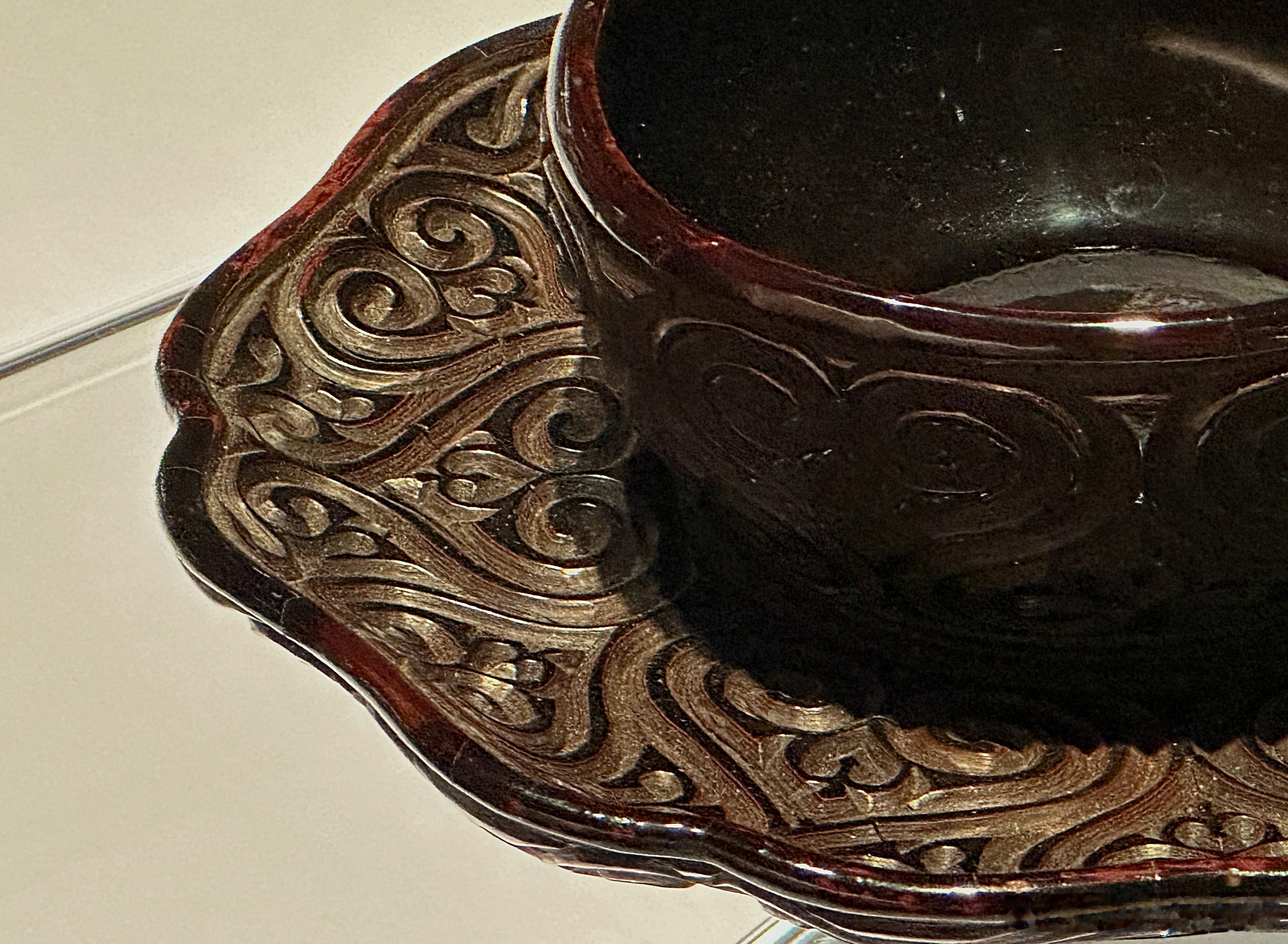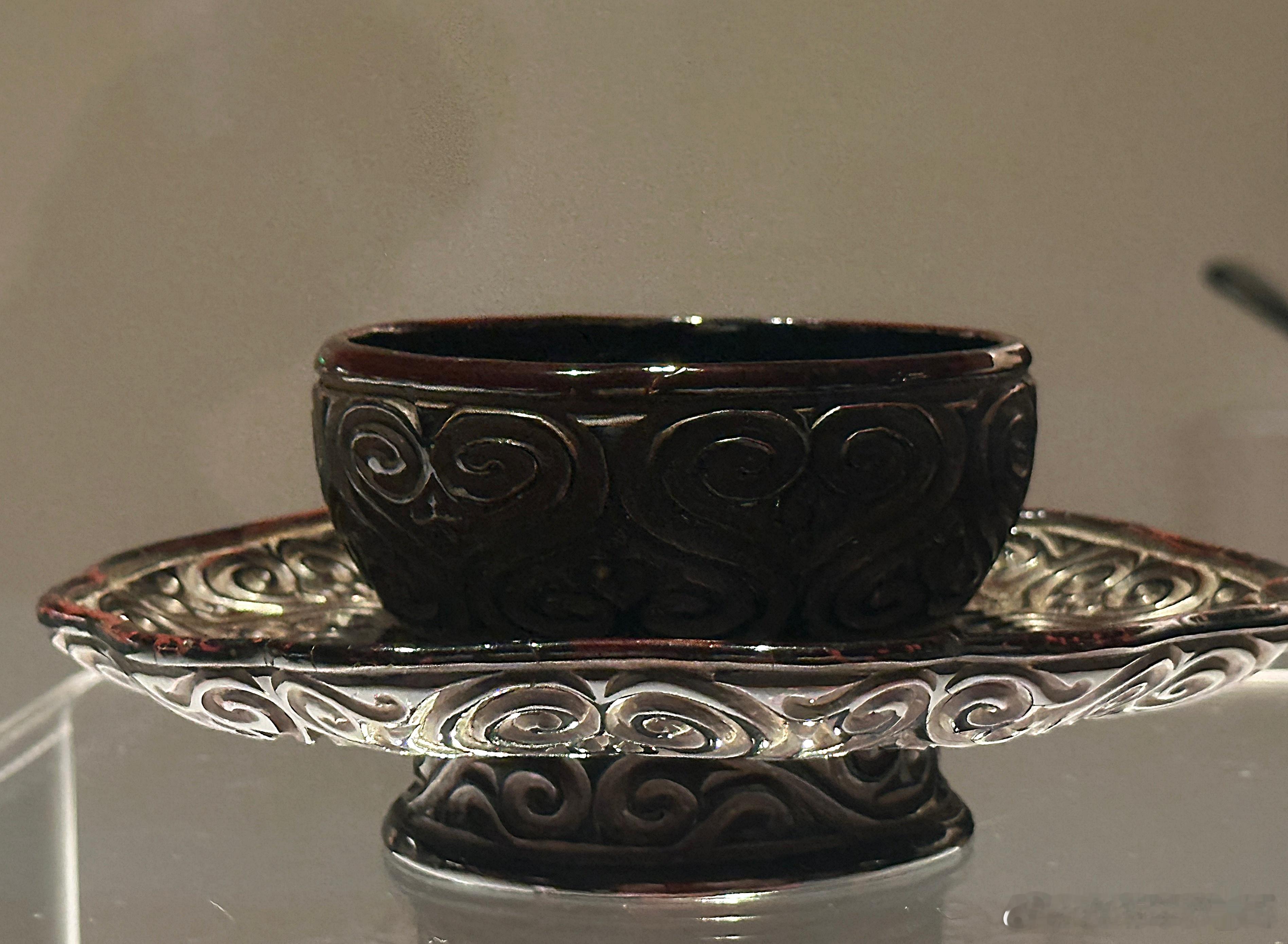 剔犀心形卷云纹盏托 南宋13世纪 东京国立博物馆藏 展出摄于上海博物馆