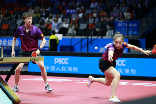 在澳门进行的第十五届全国运动会乒乓球混合双打四分之一决赛中,广东队组合林高远/刘诗雯4比1战胜上海队组合赵钊彦/孙铭阳,晋级四强。