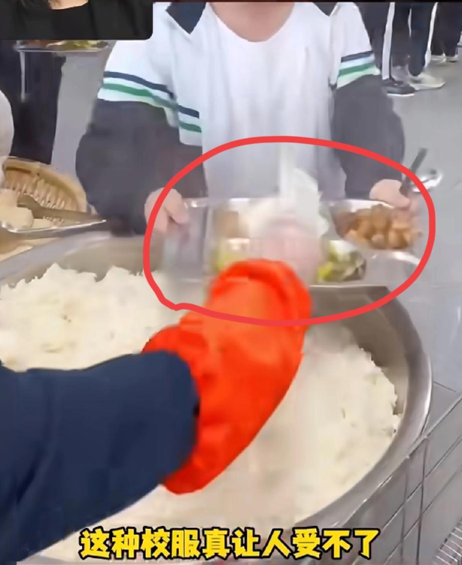 日本女作家转发一段咱家中学生打饭视频,取笑咱家的校服款式太老旧,一点都不时尚,跟