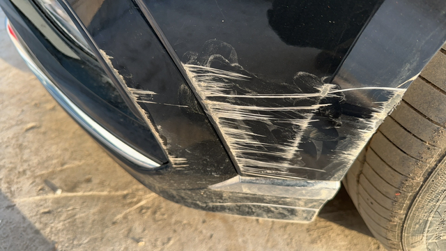 迈腾新车不到一个月! 开在路上的时候,没有注意旁边有一个东西,外面是泡沫箱里面是石墩子,结果蹭上去了,大家建议走保险还是自己修