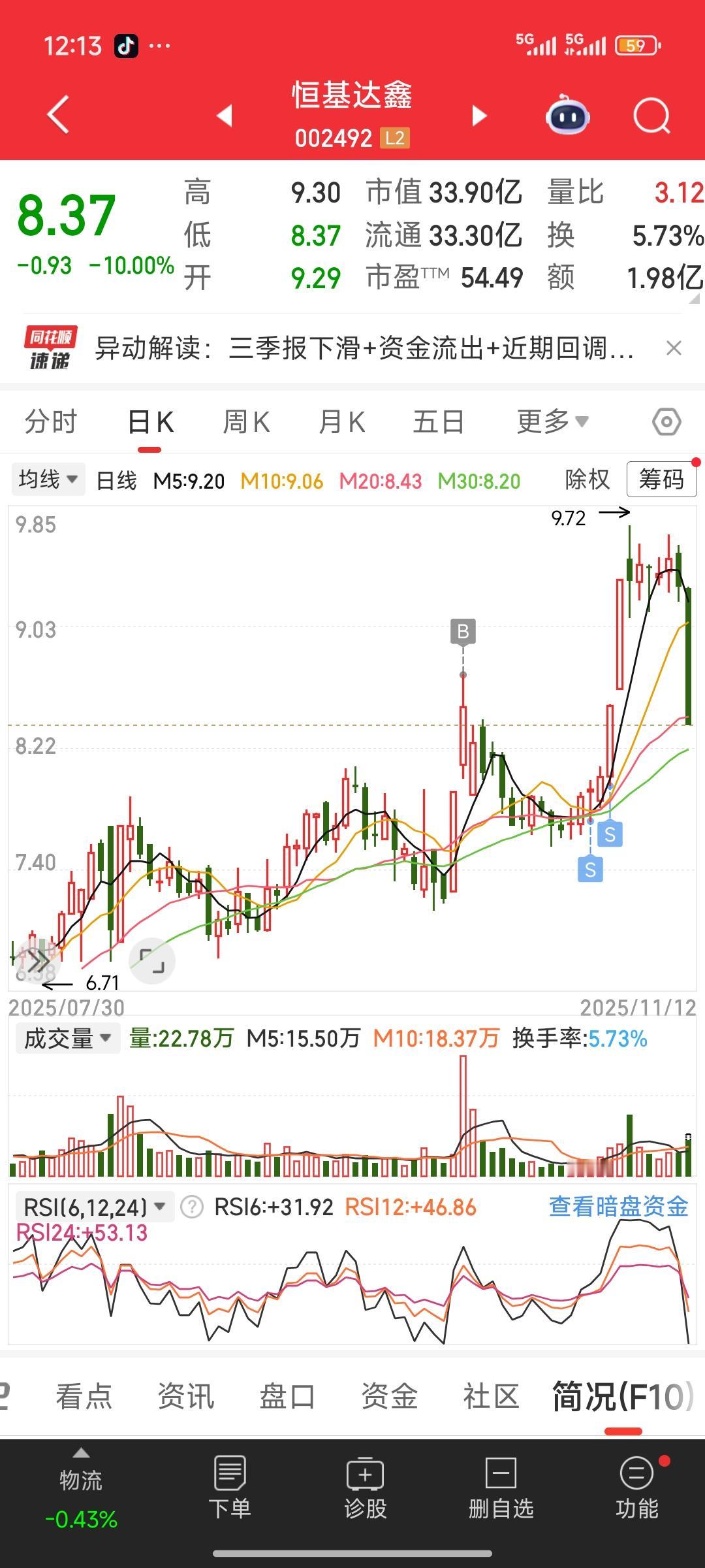 回顾自己在恒基达鑫的操作,这买卖点真是失败至极。 买点是在它缓慢匀速上涨一倍时才买入,再者,短期也是在连续两根大阳线后买入更是错上加错。买入后就是高点,随后迎来长达两周的折磨式调整下跌。在反弹来临前,我就卖出亏损出局了。 都是冲动惹的祸,回看很多操作亏损的操作这些买点全是冲动所致。以后遇到连续两根大阳线,坚决不买入。要耐心等回调低吸才买入,大不了错过一个股,还有其他股啊,特此提醒自己。 股票 股票交流 股票买点怎么找,如何发现?