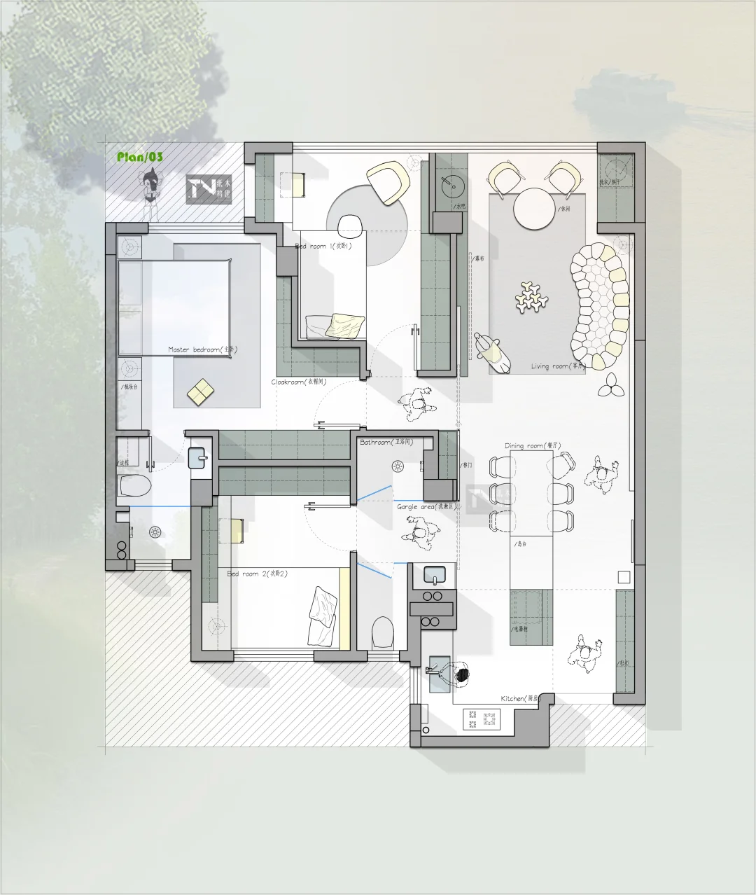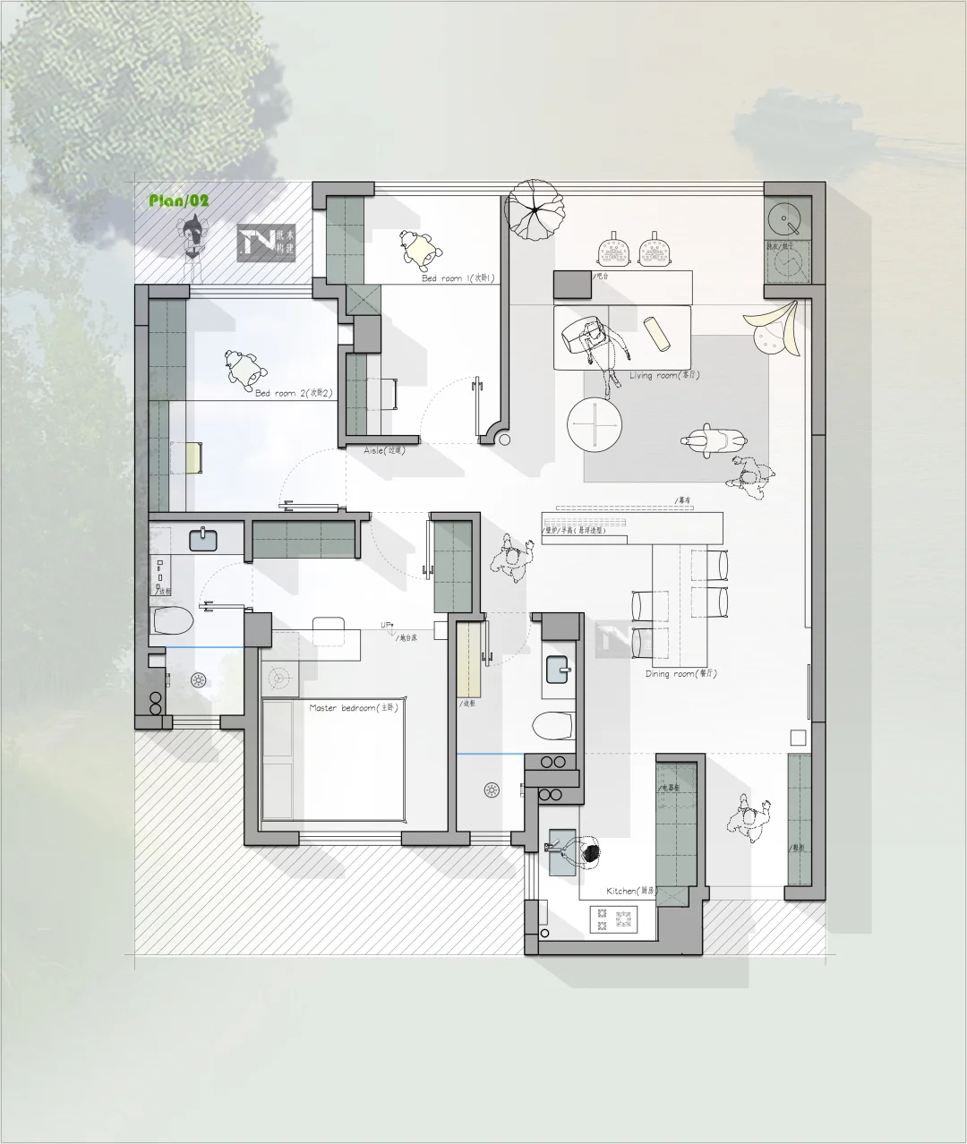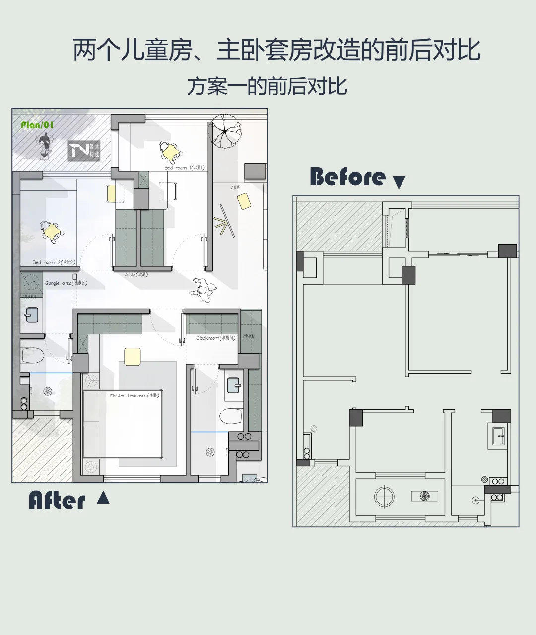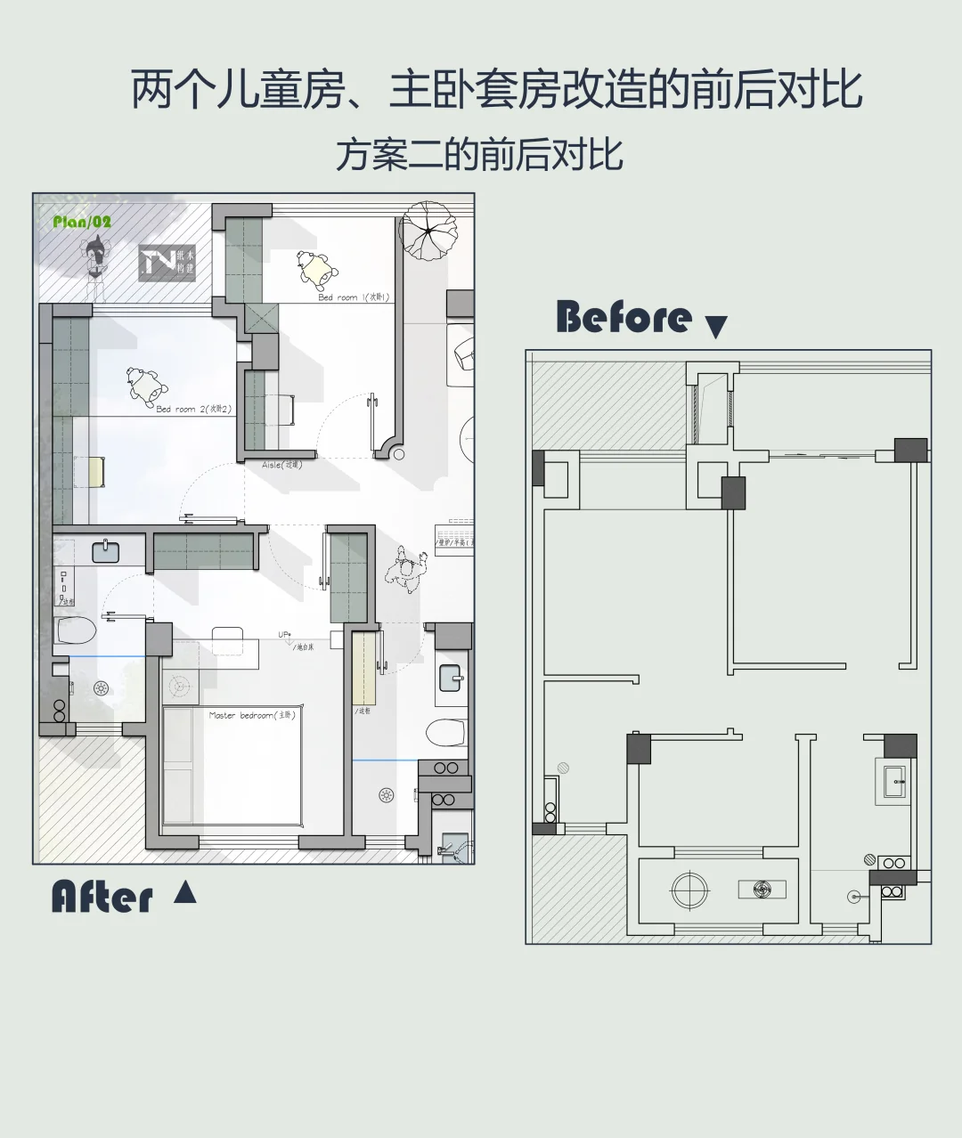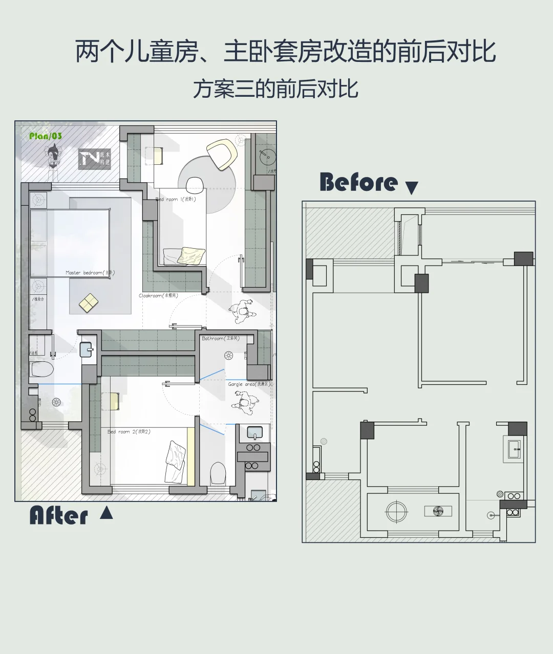 🔥「88㎡三居爆改!主卧套房+双儿童房+岛台厨