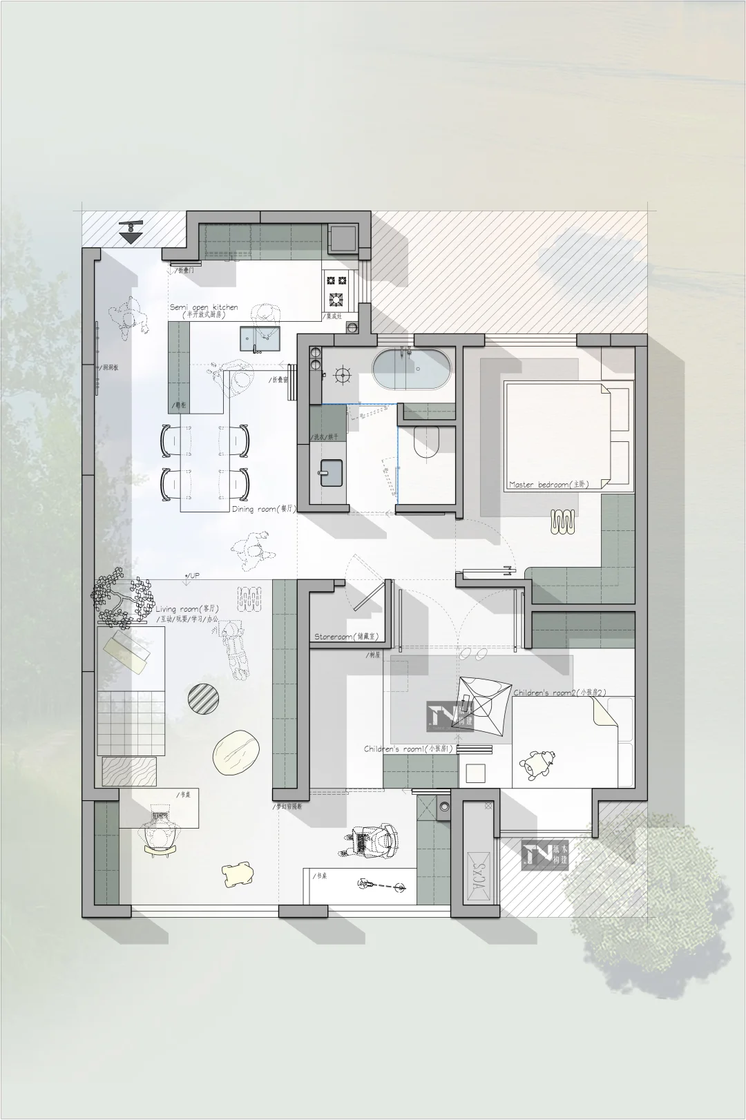 留白和灵活:不要塞太满!留出活动空间,家具选择可移动的,方便后期调整。