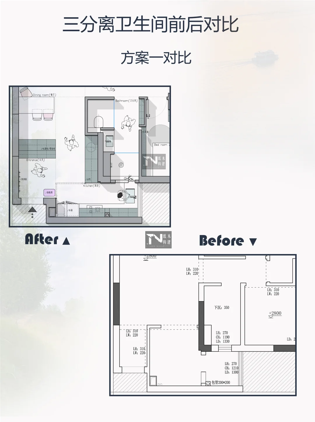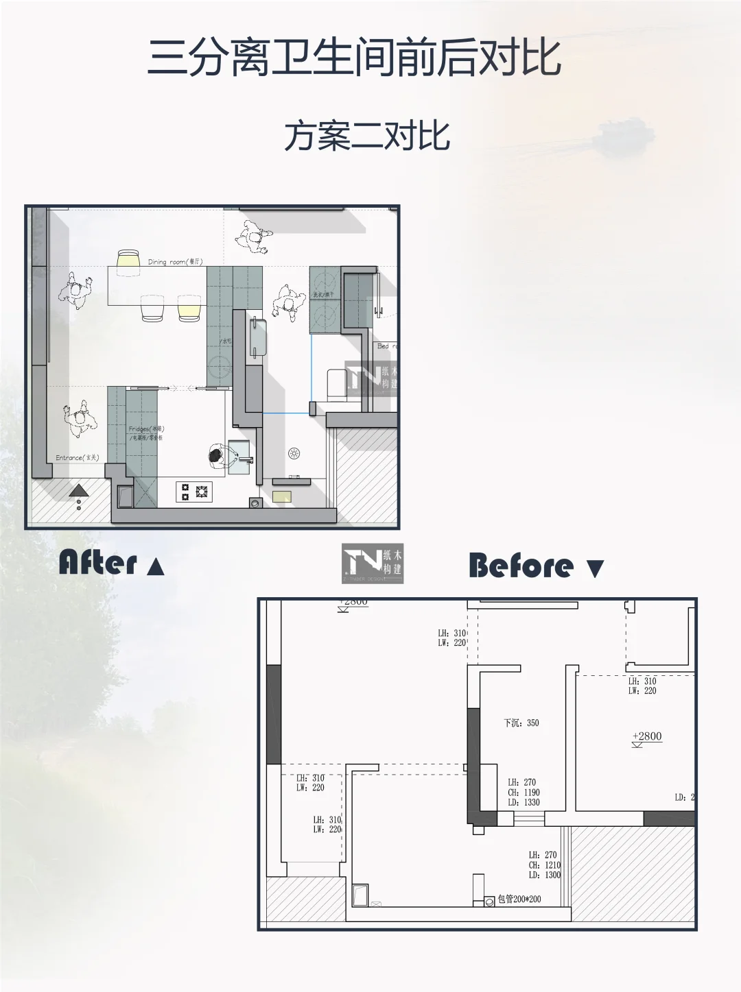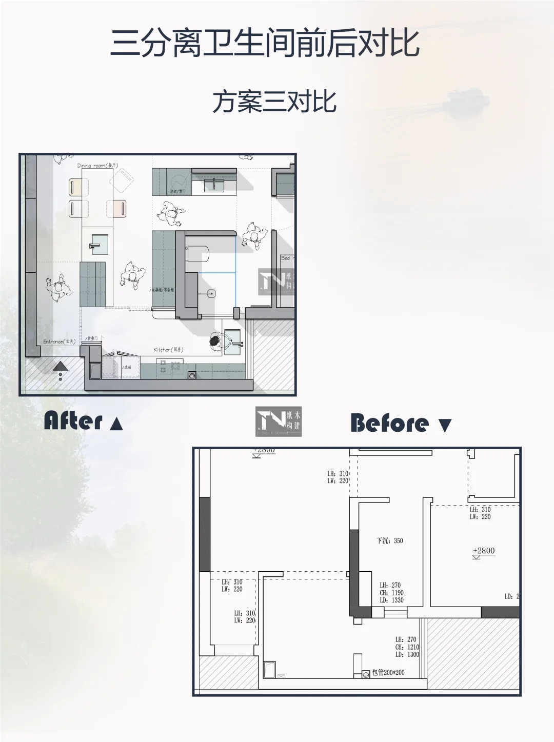 谁说小户型不配拥有三分离卫生间?我家86㎡经典三居,硬是把原本局促的两个小卫生间,改造成了超实用的三分离!从此告别早高峰抢厕所的兵荒马乱,幸福感直线飙升!👏 🏠 户型痛点: * 经典三室两厅两卫,但两个卫生间都不大。 * 早上一家三口洗漱、如厕“撞车”,效率低还尴尬。 * 湿区(淋浴)和干区(洗漱、马桶)不分离,地面湿漉漉,清洁麻烦。 💡 改造核心:拆二合一,极致三分离! 1️⃣ “偷”空间,巧布局:果断拆掉原有两个紧挨的小卫生间非承重墙!整合空间,重新规划动线。 2️⃣ 独立干区C位出道:把洗漱台彻底“解放”出来!移到过道或原卫生间门口,做成开放或半开放式的干区。明亮、宽敞,刷牙洗脸互不干扰。🪥💡 3️⃣ 马桶间 & 淋浴房各自为王:剩余空间严格分隔成独立的马桶间和淋浴房。🚽关上门就是私密小天地,🚿淋浴时水花四溅也不怕弄湿外面。 4️⃣ 极致利用每1㎡:马桶间做薄墙或用长虹玻璃隔断省空间;干区台下盆+镜柜,收纳翻倍