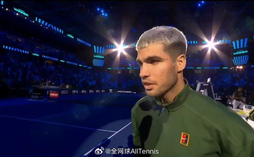 主持人:“你现在需要再赢一场比赛才能成为年终世界排名第一。你上次考虑过这件事是什么时候?”阿尔卡拉斯:“老实说,我尽量不去想这件事。显然,这对我来说将是一场非常重要的比赛,我会努力不让紧张情绪影响比赛的发挥。我会尝试控制情绪,控制自己。我会考虑比赛中的目标,试着让自己感觉比今天好,无论是发球、击球还是其他方面,显然这将是一个重要的日子。目前,我会享受这场胜利,尽量多休息,为下一场比赛做好准备。”