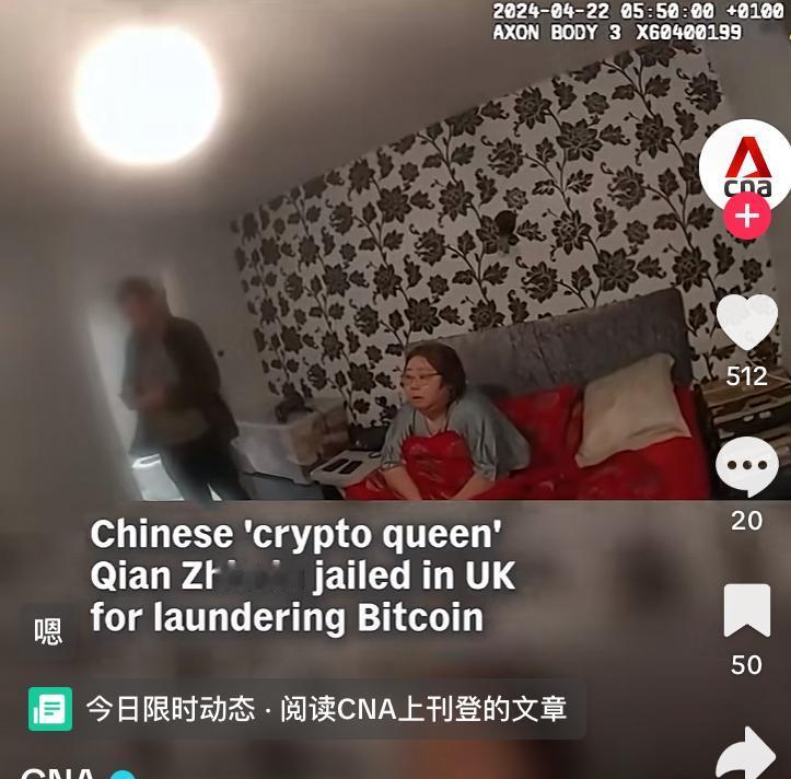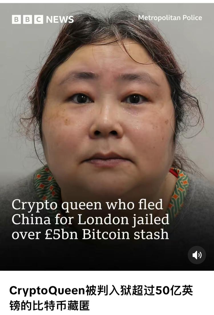 钱志敏,在中国非法集资诈骗12.8万人,涉案金额高达400亿,逃到英国利用比特币洗钱,判决的时候比特币的市值高达468亿,由于其生活奢靡在英国暴露,英国警方经过长达六年的调查,终于在2024年,她在一套2300万英镑豪宅里睡觉被捕,英国警方冻结了其账户上的所有资金,与中方开展跨境追逃追赃合作,同时她被判处11年8个月监禁