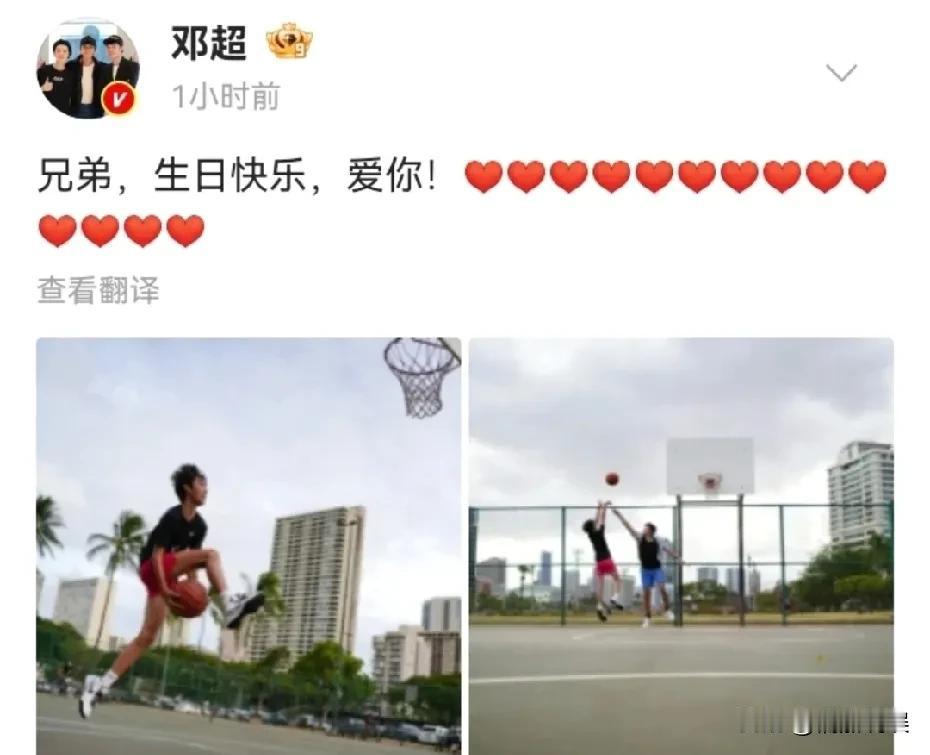 邓超是真逗,儿子等等14岁生日,他晒照庆祝儿子生日快乐并发文“兄弟,生日快乐,爱你!” 哈哈哈,用的称呼是“儿子”,看来这爷俩平时相处方式是真好啊,既是父子,还是“兄弟”加朋友! 画面中父子俩人在打篮球,看照片,等等非常高瘦,肤色偏黑,个子挺高,感觉不输老爸了,运动细胞也非常好,弹跳能力很强,上篮的姿势非常生猛。 从他们一家平时的路透来看,父子俩都是篮球爱好者,邓超对打篮球也非常有兴趣。 看长相,妹妹像爸爸,等等眉眼更像妈妈孙俪,大眼高鼻,脸挺小。感觉长大了一定是位帅哥,颜值肯定在爸爸之上。
