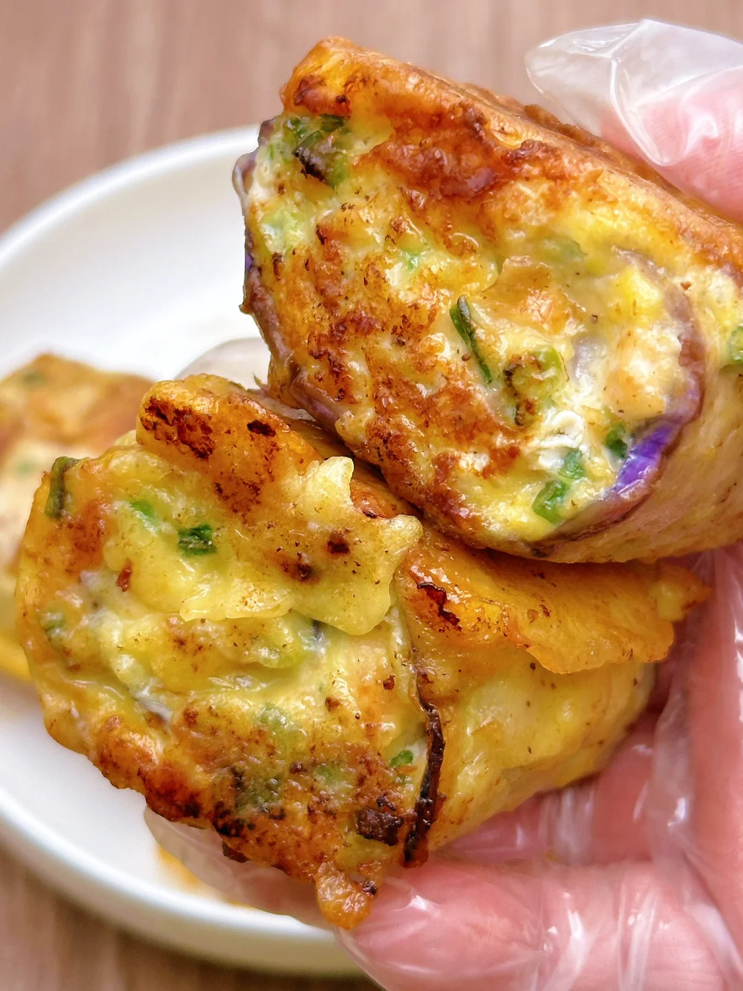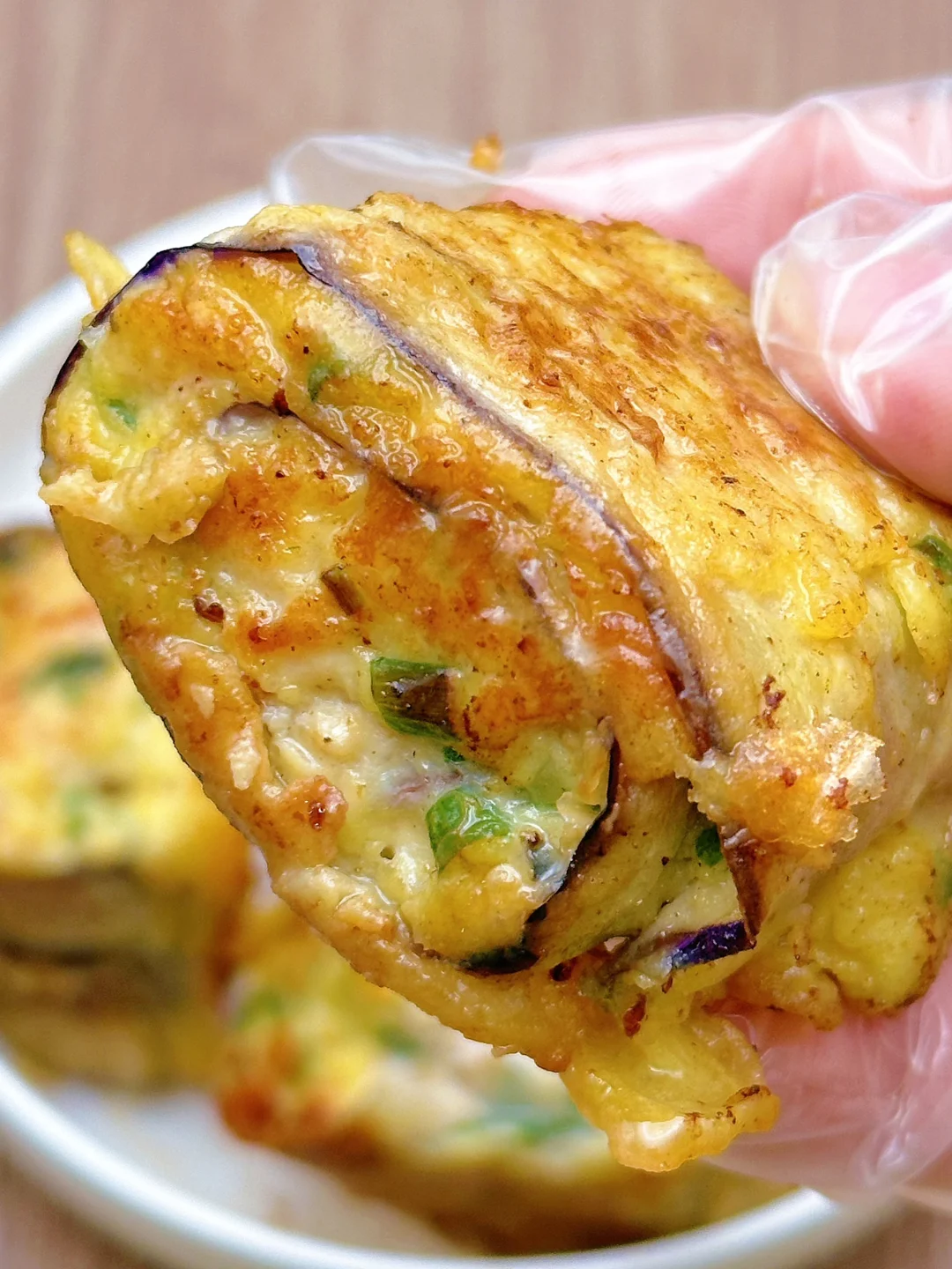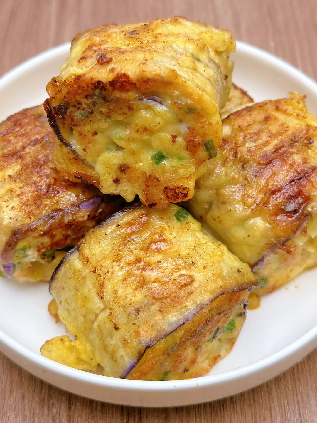 爆香的肉沫茄子卷,味道比烧烤的蒜蓉茄子还好吃,一出锅就惊艳到我了,外焦里嫩,鲜嫩多汁,好吃不腻,一口咬下去还会爆汁,好吃到停不下来了,皮薄肉多,满满的肉香,减脂期的姐妹们可以用空气炸锅哟,不放油也好吃~ 材料:鸡胸肉,鸡蛋,茄子 做法:如图所示~ ①鸡胸肉绞碎成肉末之后加入一勺淀粉,一勺蚝油,少许黑胡椒拌均匀腌制15分钟 ②加入葱花蒜末搅拌均有 ③碗里打1个鸡蛋+一勺淀粉(或者炸粉)+少许水搅拌均匀 ④茄子削成薄片,铺上肉末,一个个卷起来。放入蛋液裹均匀 ⑤锅里少油,放入茄子卷,煎至每面金黄(最小火,多次翻面。为了热量低,少油,所以姐妹们要耐心点哟)也可以直接放入空气炸锅,喷油,180°烤10分,翻面再烤8分钟