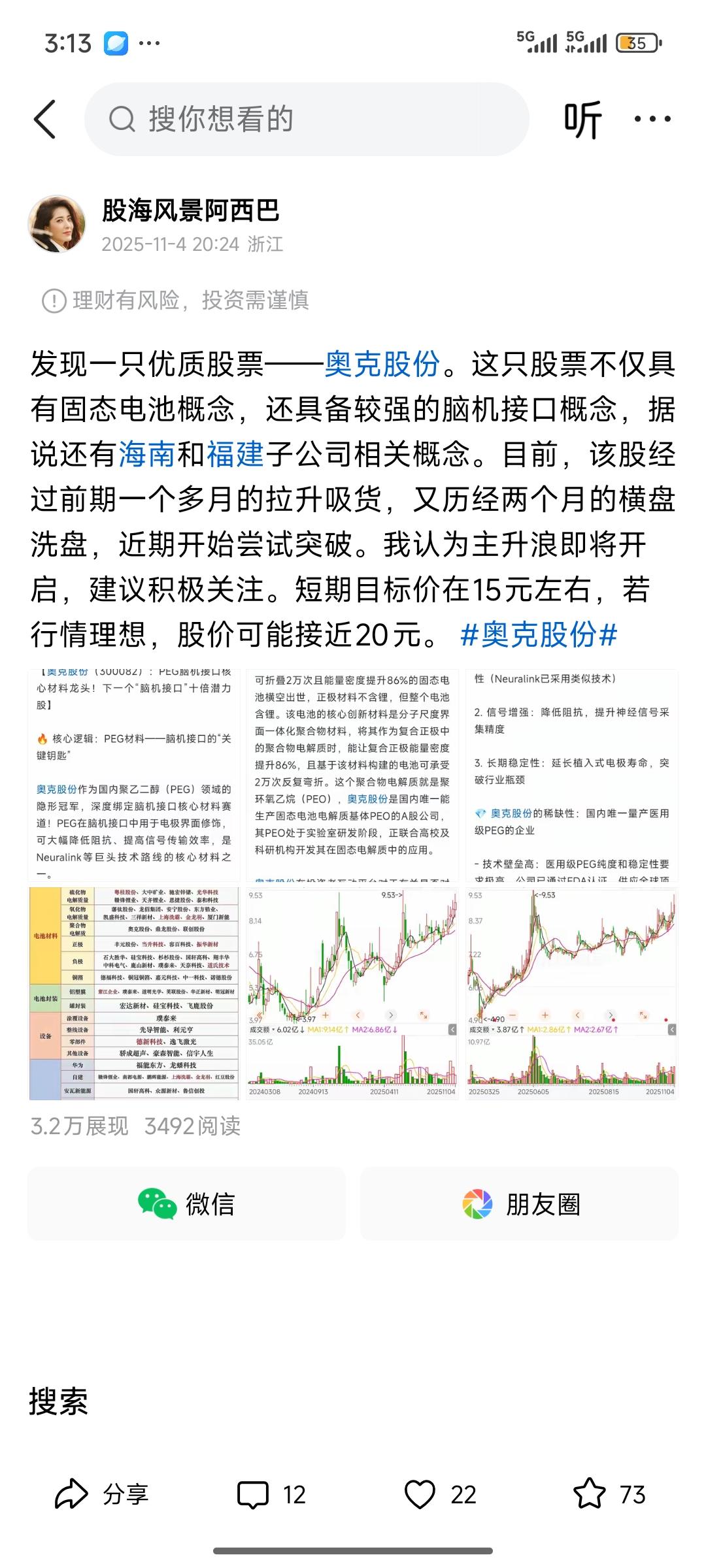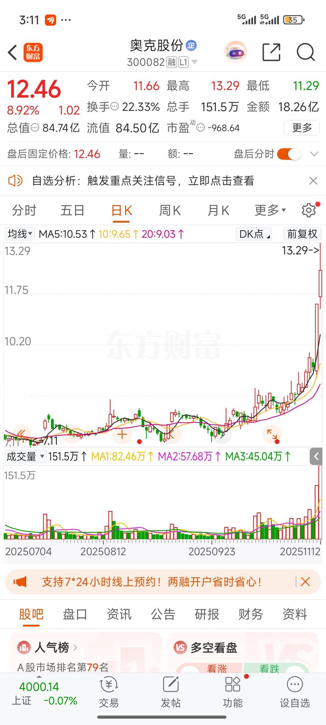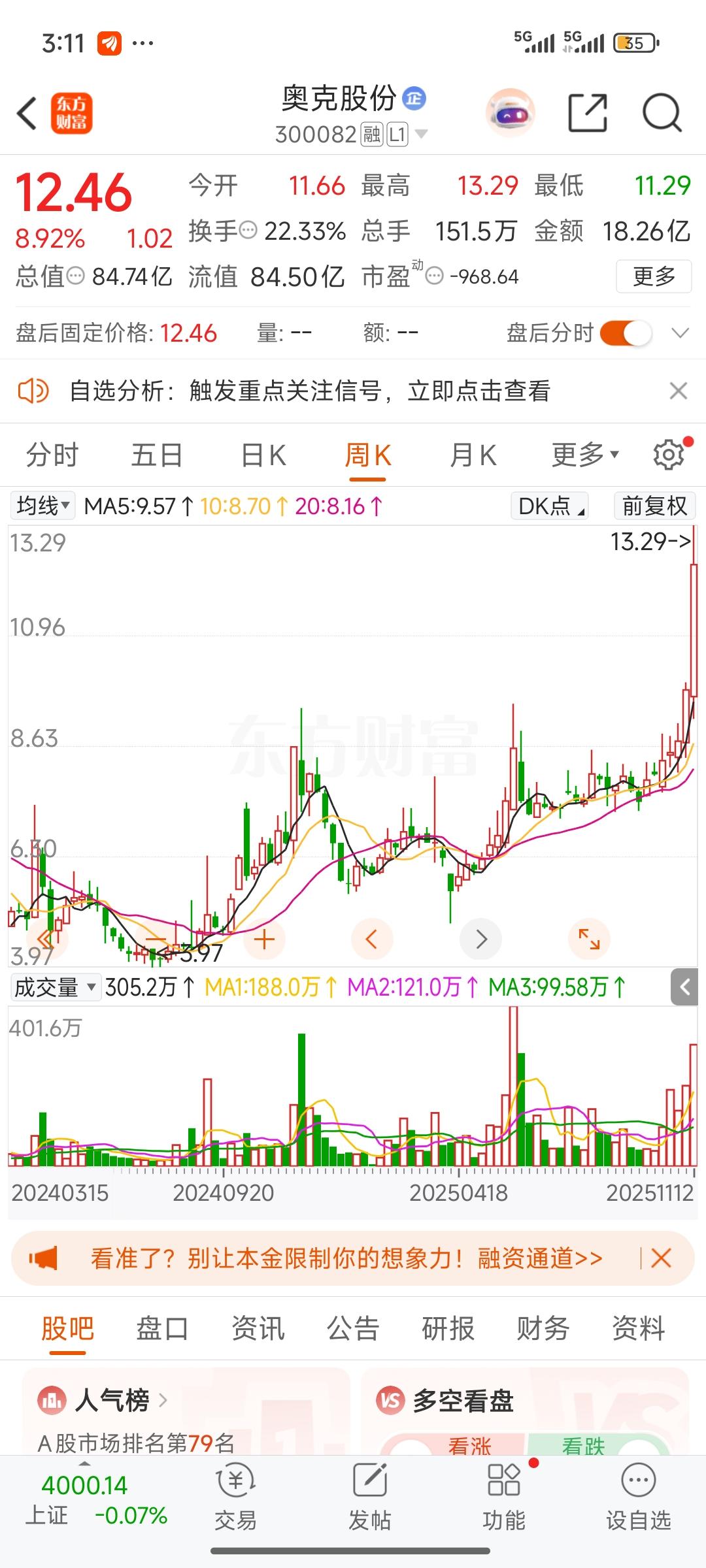 11月4日,我便在头条发文,表示看好奥克股份。实际上,那段时间一直存在绝佳的买入时机。倘若当时买入,截至目前,股价已从9块涨至最高近13块,轻轻松松就能斩获40%以上的利润。当下,我认为可以分批逐步获利了结了。
