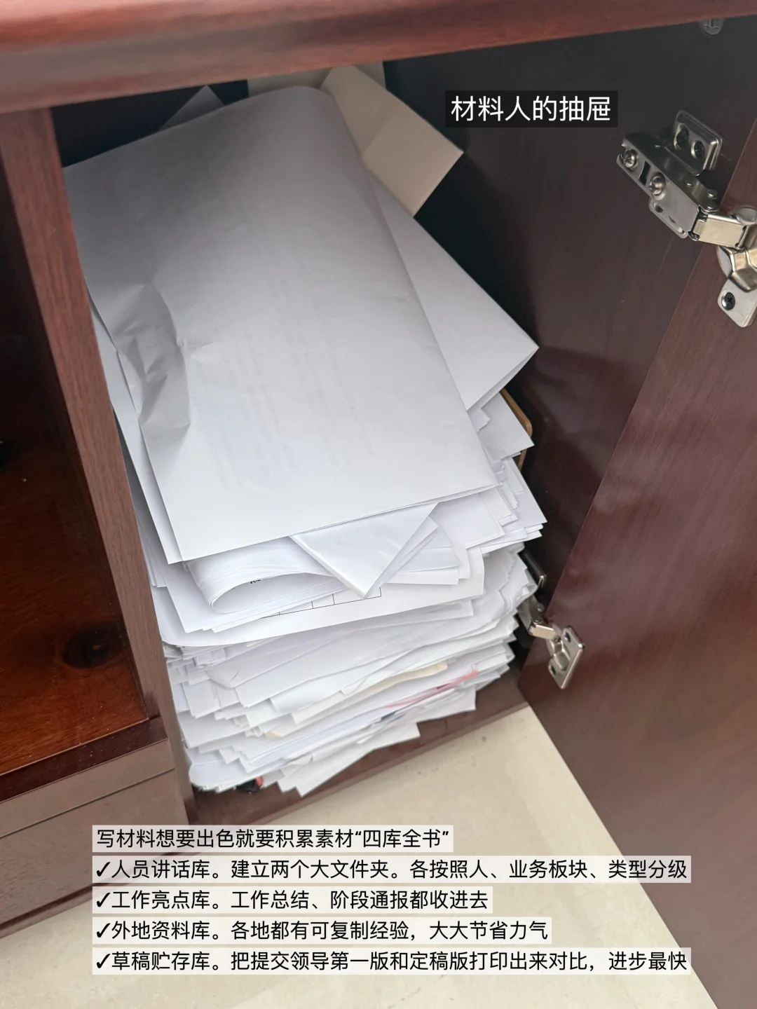 ✓草稿贮存库。把提交领导第一版和定稿版打印出来对比,进步最快