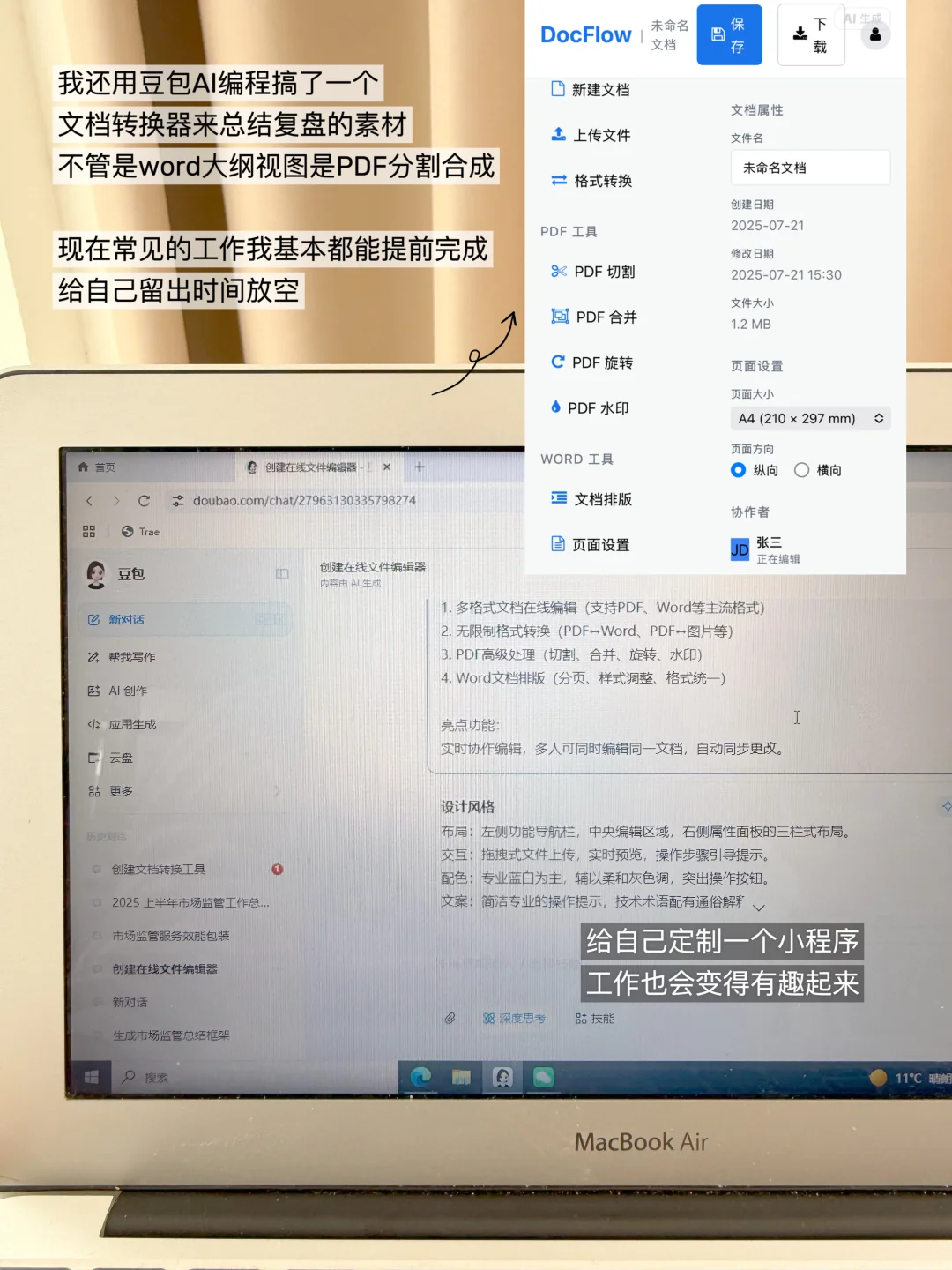细节当然也重要,所以我还用豆包AI编程搞了一个文档转换器,总结复盘的素材,不管是word大纲视图是PDF分割合成,都根据我的使用频率和喜好做成了一个小工具。所以其实工作也没那么繁琐烦心啊。