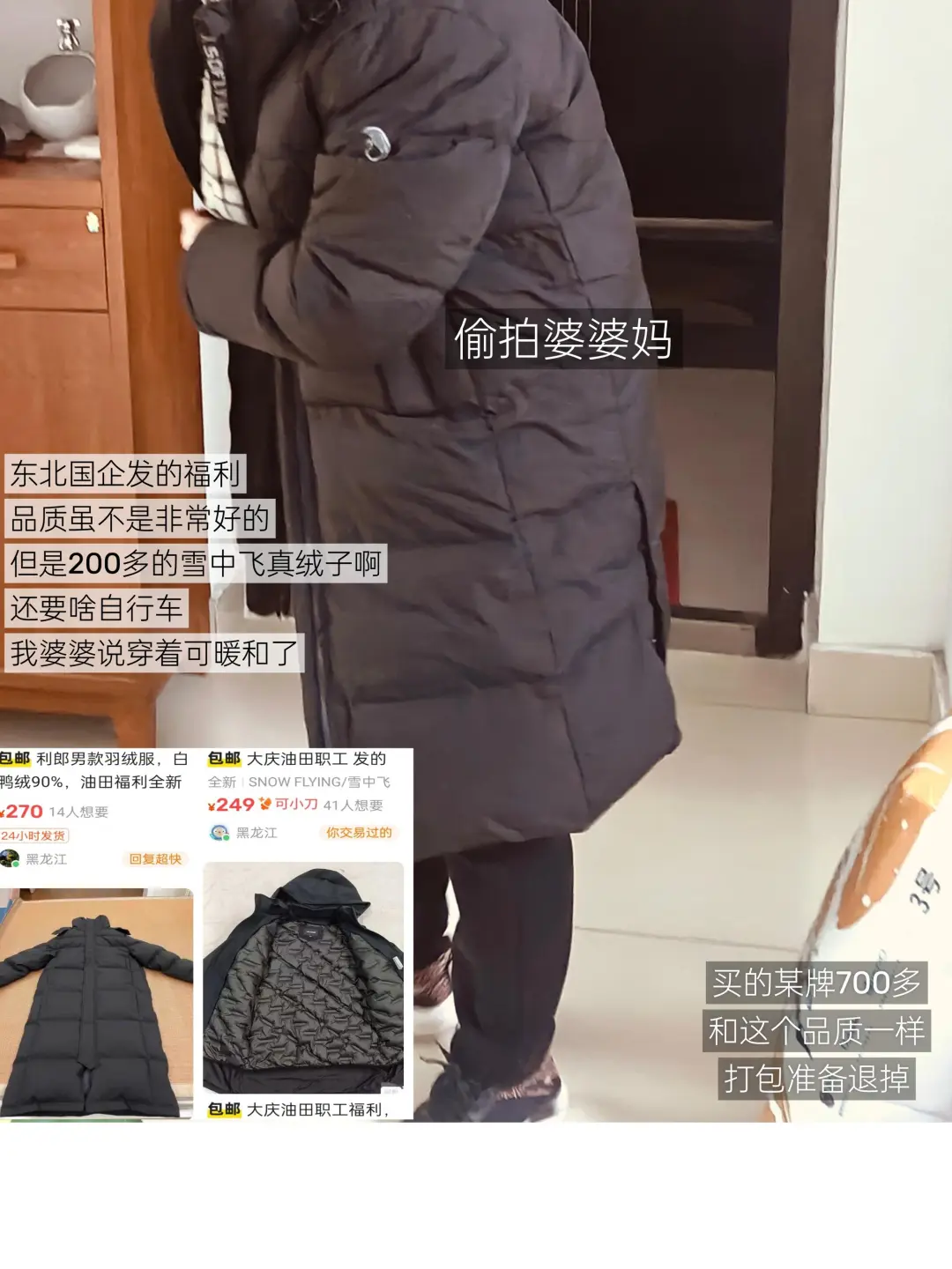 我之前给婆婆买的到脚踝款的被子羽绒服才2百块。品质不敢说多牛,但是200多的雪中飞真绒子啊[同款R]这还要啥自行车?其实不仅仅是羽绒服,西装西裤、羊毛衫、衬衫都可以按一样的方法买单位福利款,而且一般单位很多人同时挂还会卷价格。