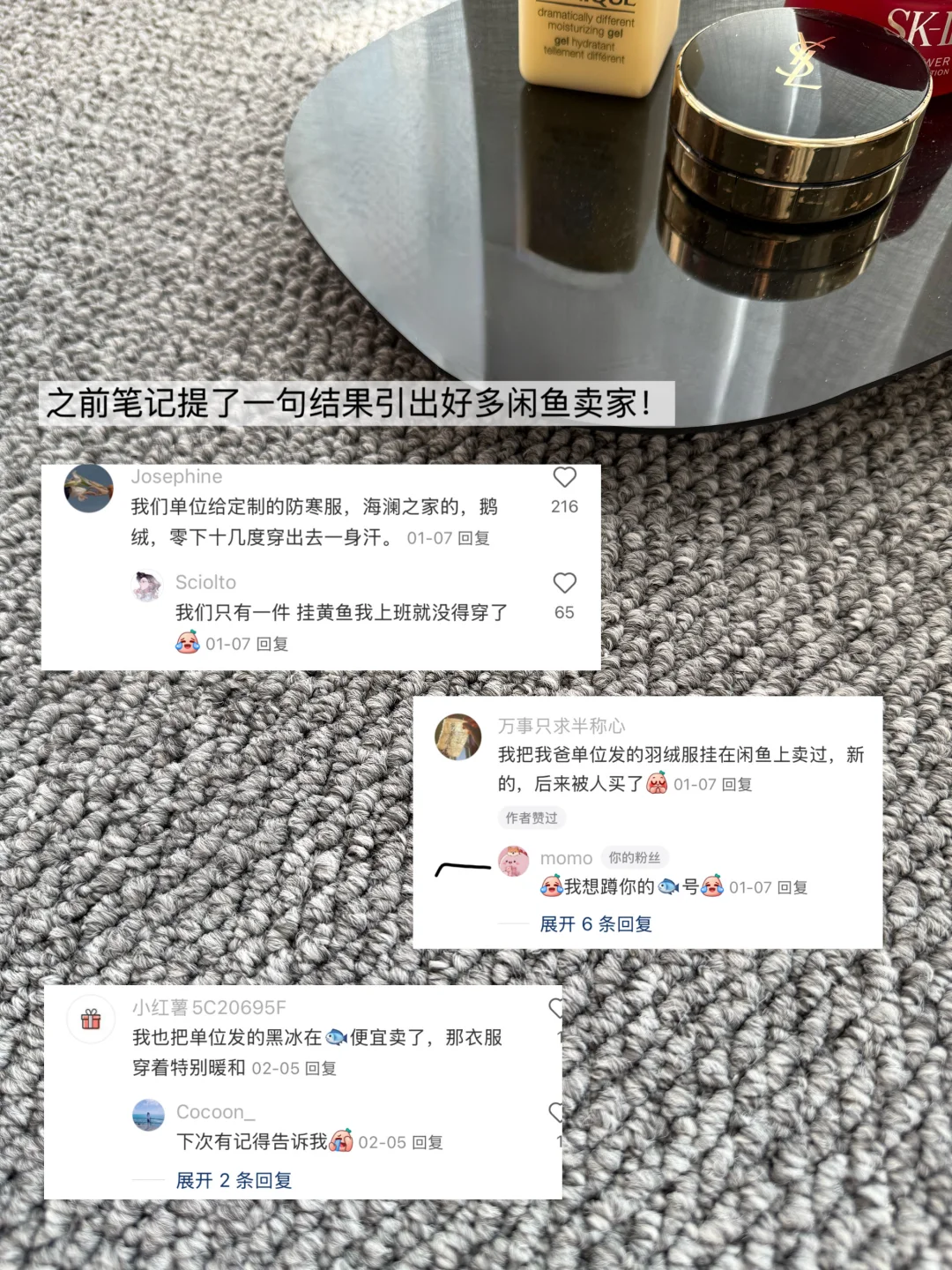 三是好买,很多央企、国企工服年年都发,单位也会考虑损失量多订一些。很多职工自己家里人手一件了,还穿不完就全新卖。在闲鱼🔍大庆油田羽绒服100多完全可以买到全新有吊牌的。爷奶长辈过年礼物必备!