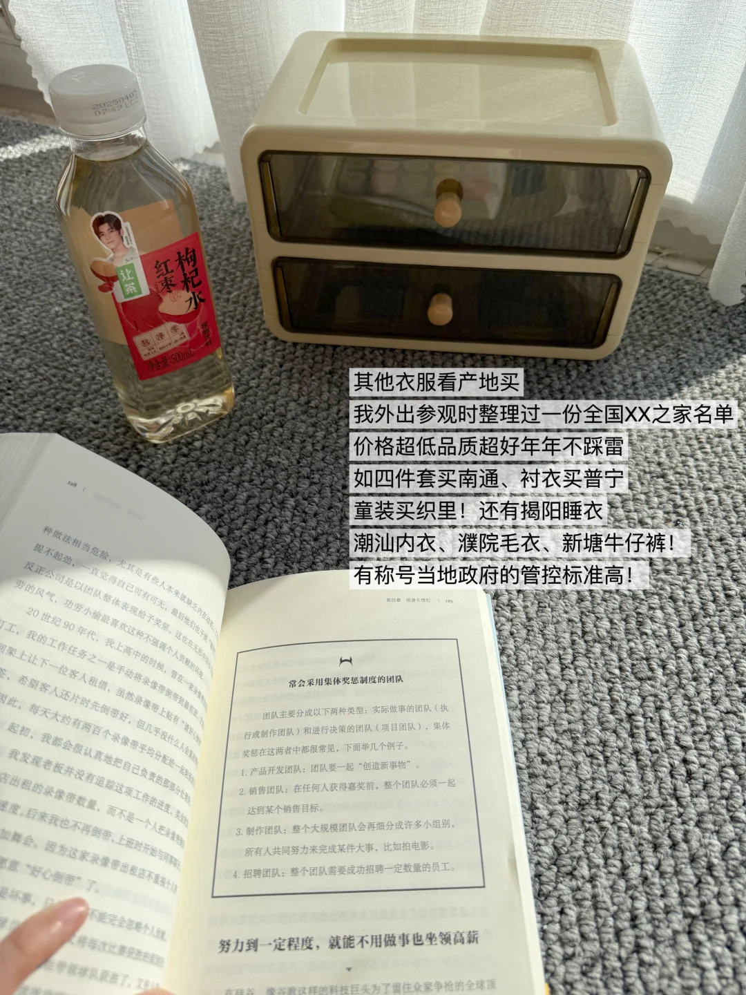 其他衣服看产地买,我外出参观时整理过一份全国XX之家名单年年不踩雷。如四件套买南通、衬衣买普宁、童装买织里!还有揭阳睡衣、潮汕内衣、濮院毛衣、新塘牛仔裤!有称号当地管控标准高!