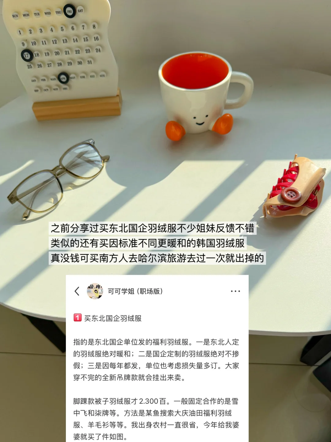 之前分享过部分国企年年发羽绒服穿不完,基本200元出售上千元品质,不少姐妹反馈不错。类似的还有买因标准不同更暖和的韩国羽绒服、南方人去哈尔滨旅游去过一次就出掉的[电影R]