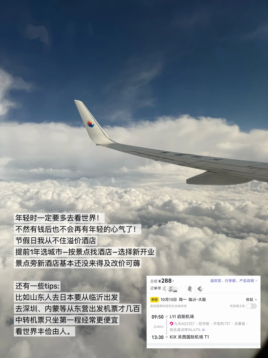 还有一些tips:比如山东人去日本要从临沂出发,去深圳、内蒙等从东营出发机票才几百;中转机票只坐第一程经常更便宜。学生党时间多的可以坐睡一觉正到达的卧铺,看世界丰俭由人。