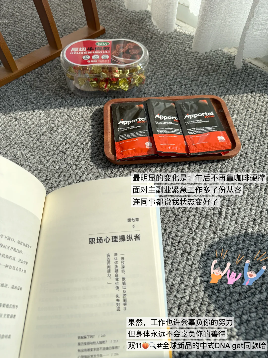 我发现每一次熬夜、每一顿凑合、每一份强撑,领导不一定记得,但身体一定记得。工作不得不做,我就补充能量追求平衡,被意大利留子朋友种草了ApportALBoost矿维营养补充剂。特适合我们这种久坐熬夜、饮食不规律、总感到慢性疲劳的职场人。最明显的变化是:午后不再靠咖啡硬撑,面对突发工作多了份从容,连同事都说我状态变好了。果然,工作也许会辜负你的努力,但身体永不会辜负你的善待。双11在🍑🔍全球新品的中式DNA get同款哈。