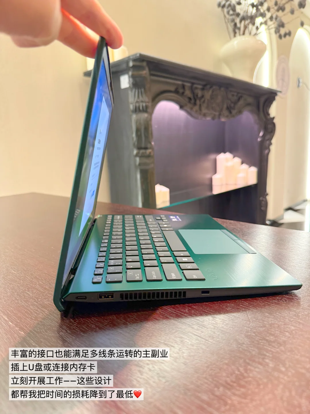 180度翻转屏幕让我能随时轻松和身边人分享内容,丰富接口也能满足多线条运转的主副业。插上U盘或连接内存卡立刻开展工作——这些设计都帮我把时间的损耗降到最低。