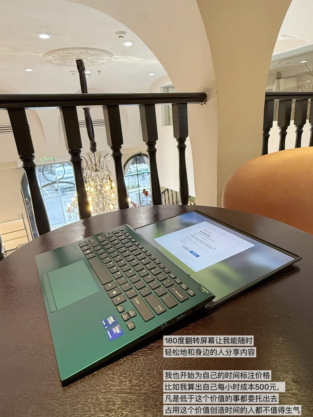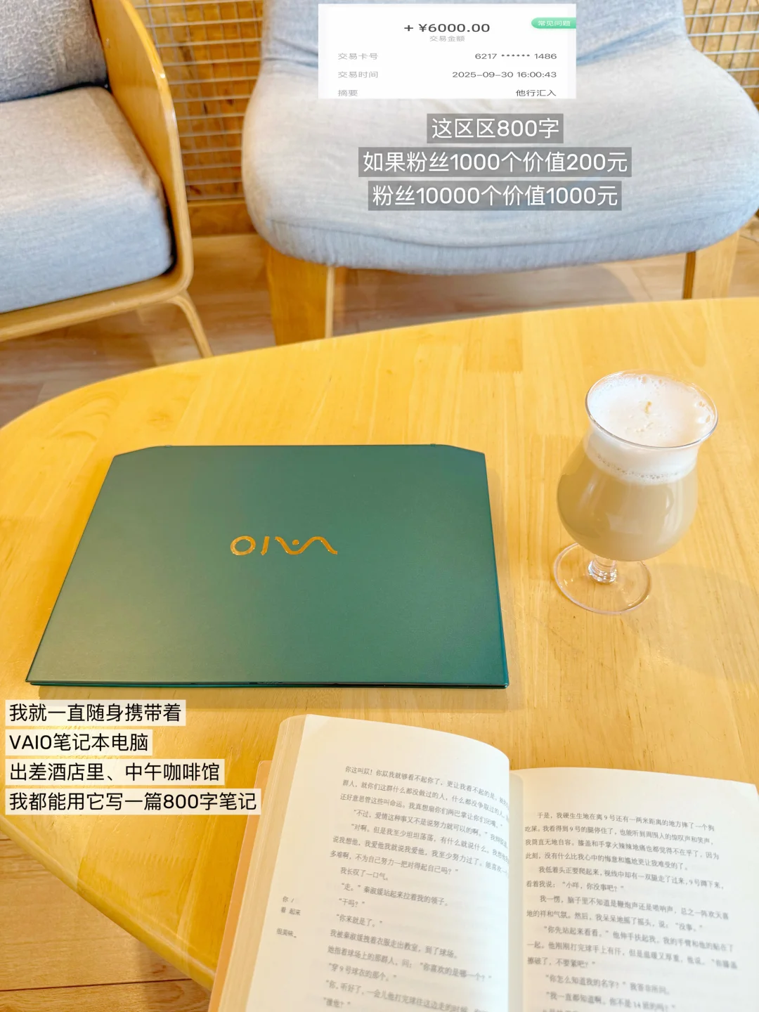 我就一直随身携带着VAIO笔记本电脑,出差酒店里、中午咖啡馆,我都能用它写800字笔记。