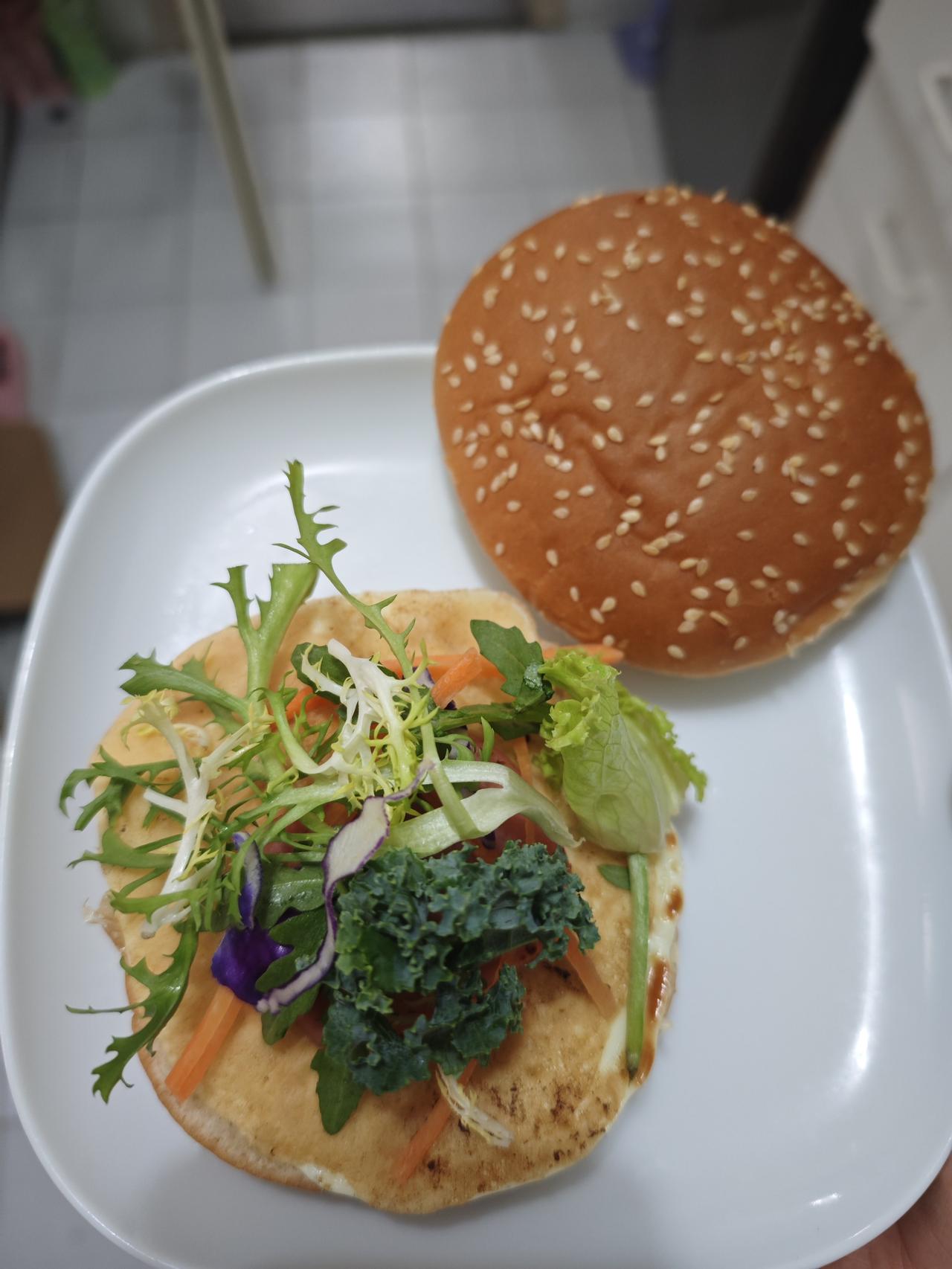 今日早餐:自制汉堡包🍔 每月早上6:30起床为孩子做一餐营养早餐 原来汉堡包真的很简单,自己做更加卫生健康, 汉堡坯,鸡蛋,培根或者火腿,再加上素菜最后加上番茄酱 十分钟内就能完成,简单方便的早餐可以学起来!孩子超级爱吃!