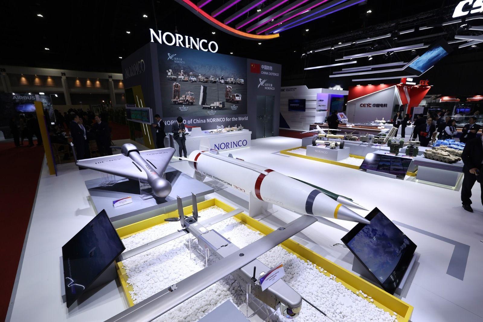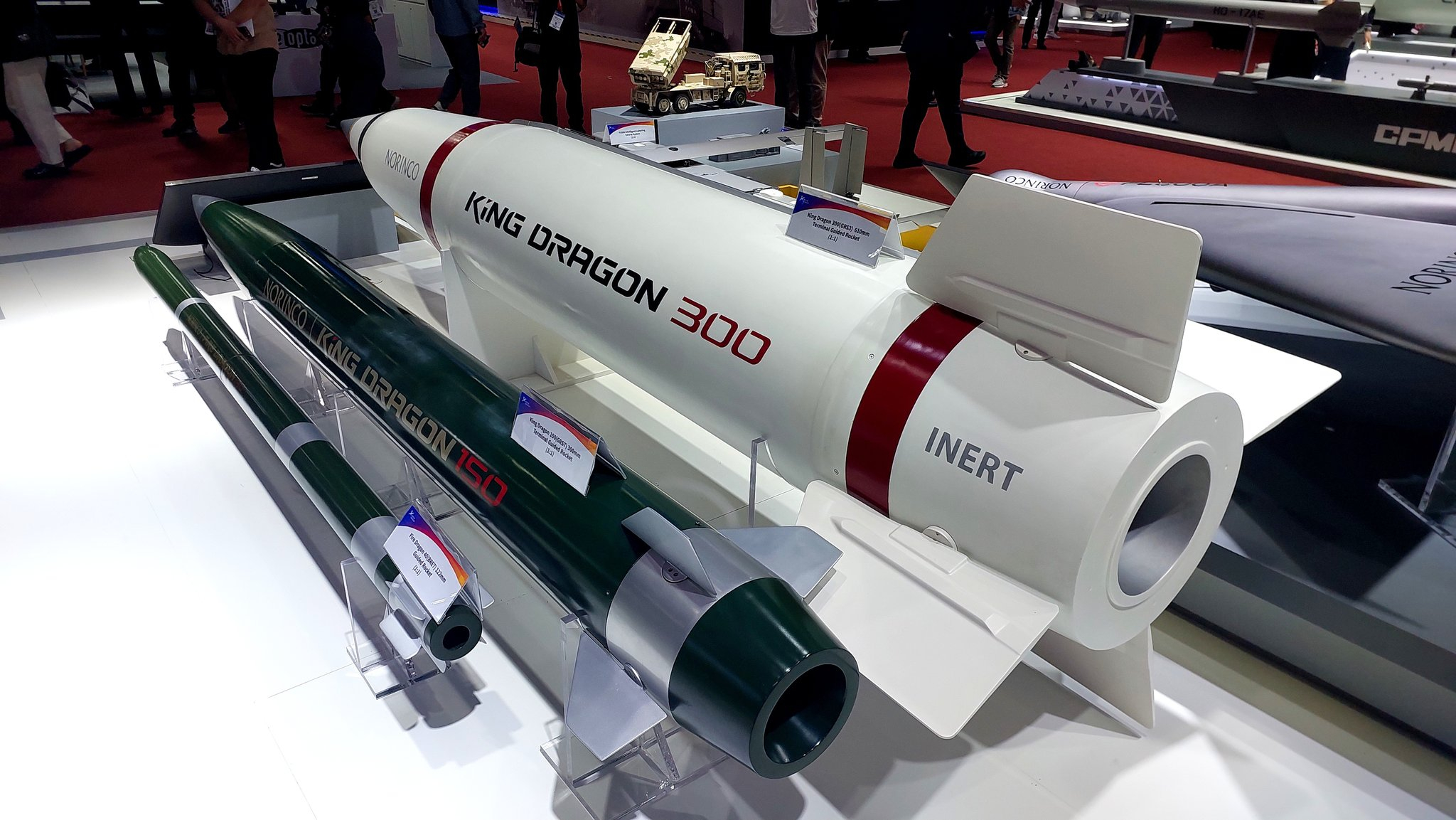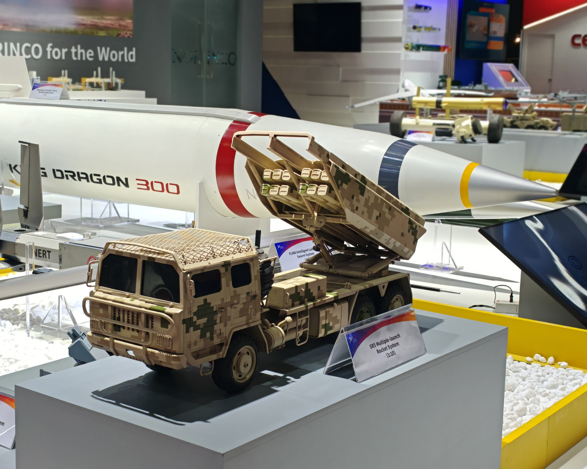 中国北方工业在泰国曼谷举行的 “2025年国防与安全技术展览会”上展出的SR5多管火箭炮模型,其驾驶室顶部增加了防御自杀式FPV弹药攻击的金属格栅