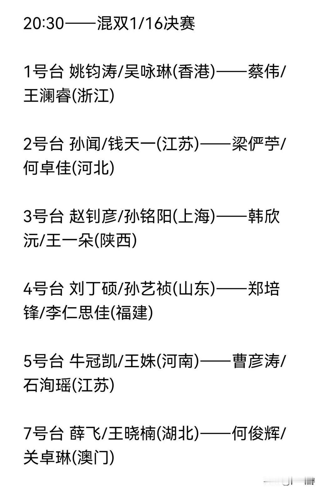 🏓全运会•混双1/16决赛将于今天(11.7周五)12:30🕧和20:30?