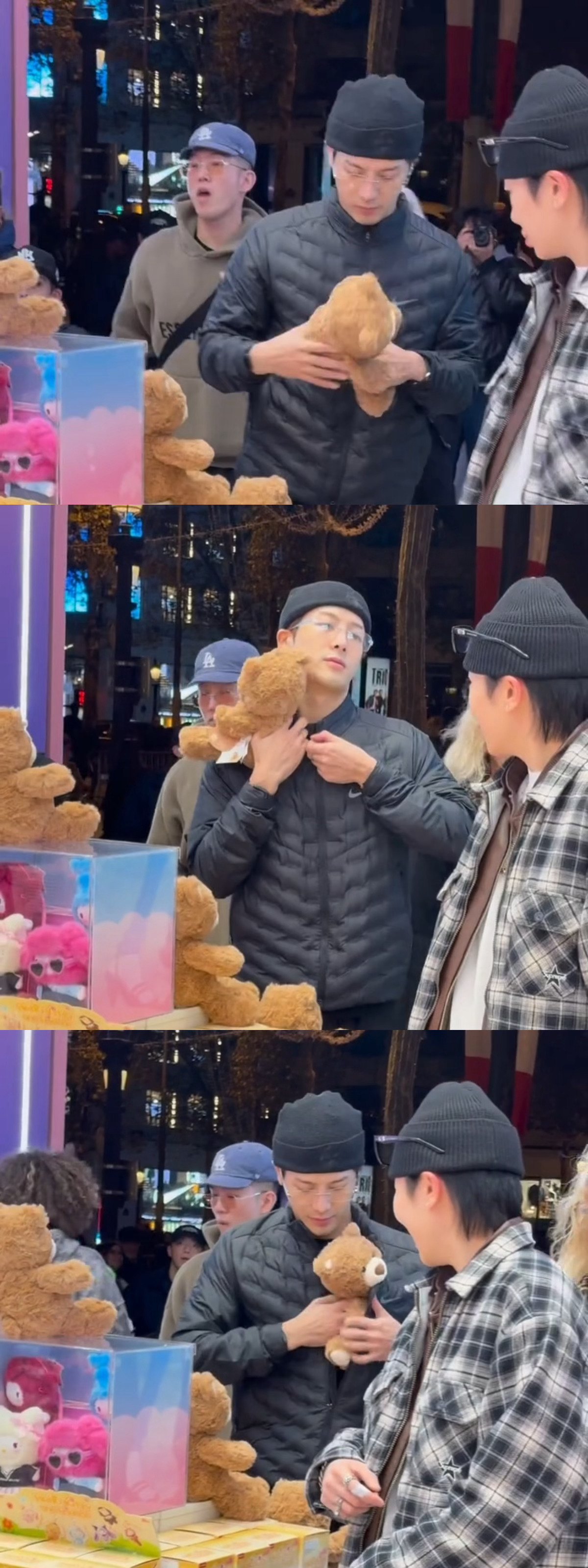 不愧是王嘉尔,上一秒还在国内被偶遇吃饭,下一秒就在巴黎逛街被偶遇,呜呜国际感是这样的!反差就在于如此之潮如此之拽然后买了玩偶🐻还一下子把娃娃塞进衣服里护着,这是害怕小熊感冒了嘛,如此萌啊萌啊!完完全全就是daddy级别的🥺