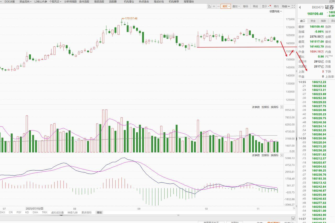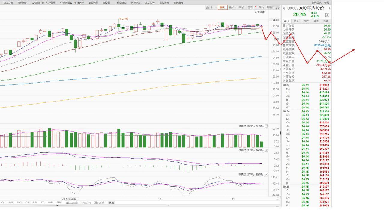 今日A股探底回升,盘面却释放一重磅信号! 要有大跌 今日上午市场偏弱,不少个股在早盘探底回升后再次杀跌,中午收盘超4000+下跌, 中午村里紧急发文,坚决防止市场大起大落、急涨急跌! 这就很有意思了,涨多了也不行,不涨也不行,涨多了就得跌,跌多了就要涨。到底如何才维持市场的稳定? 那就是错峰拉升,轮动跌, 主要目的就是涨的时候要克制,指数要温和,跌的时候要有一定赚钱效应。 所以当前底部的,或调整充分的会有较好的轮动机会,但只是以轮动对待。 复盘了不少板块的中军,我得出的结论就是,这里极大概率是中期顶部。 不少都是有明显的诱多后杀跌。 所以这里还是要注意风险的,远离双头杀跌的前期强势股 今日上午盘中画了2幅趋势图 现在上方空间非常有限,主要看跌,看支撑,10月17日的那个低点不能破,这个很早就说了 另外就是看券商,如果这里是中期顶部,证券板块这里会出现一根破长阳的大阴线。 而且还是要在短期发生。